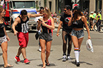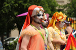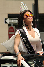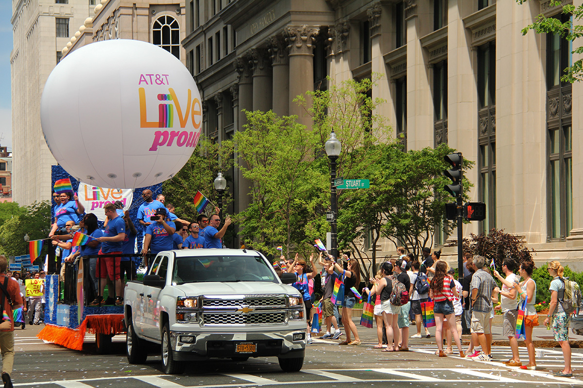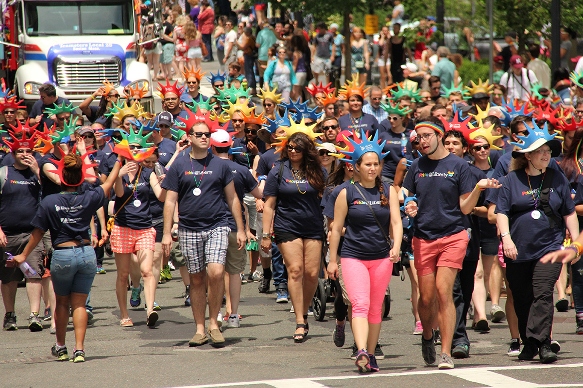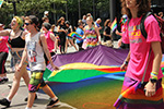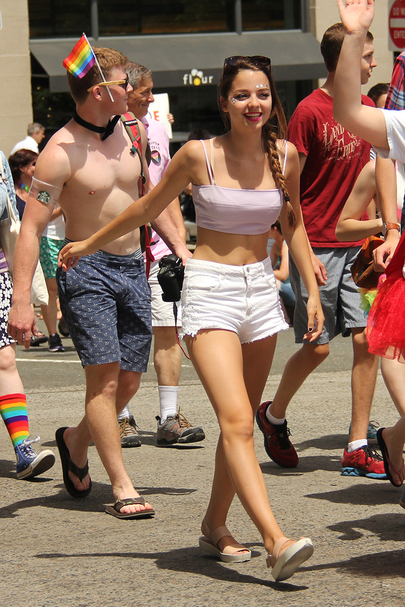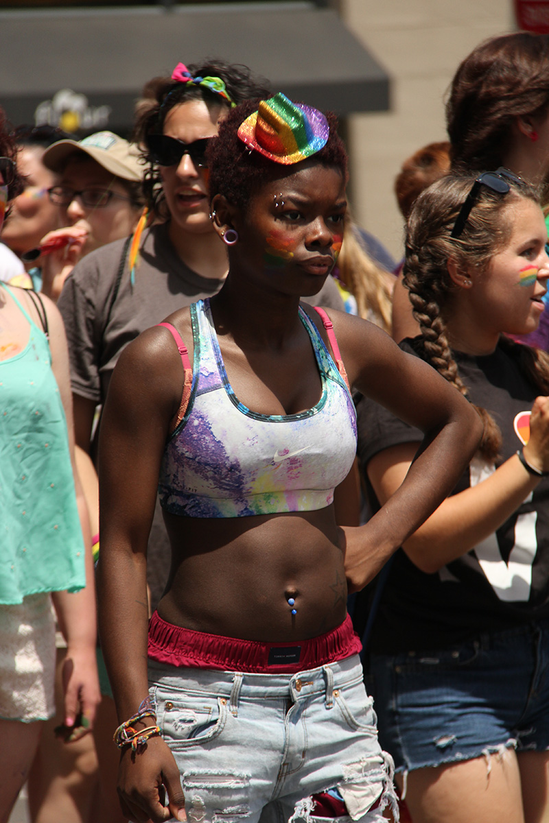 i was hoping to leave early, but i didn't get out of my house until 11:10, with the pride march starting at noontime. it took me about half an hour to get to backbay station, but fortunately there still weren't too many people lined up on the sidewalks yet. a photographer had already staked out the best stop, on top of the hill by a mailbox. i was about 10 yards further down. the weather was pleasant but sunny enough that i sprayed on some sunblock before i left the house.