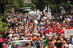 pride march typically starts on time and this year was no exception, beginning with a cavalcade of motorcycles.