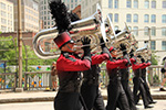afterwards i made my way to the arthur fiedler footbridge, riding alongside the parade route from boston common as it made its way up charles street then onwards to the state house. approaching the footbridge,