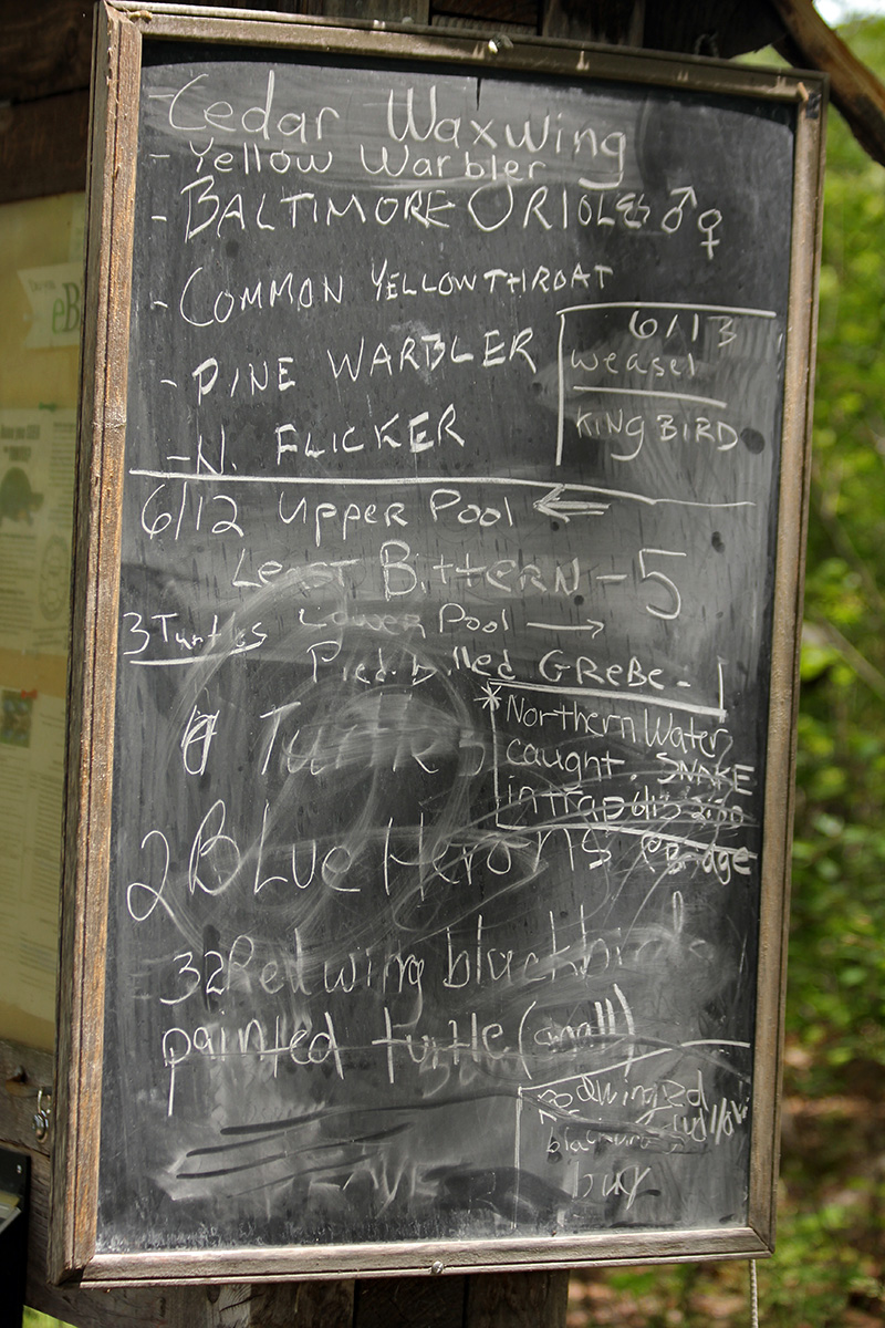 i caught a glimpse of a trio of cedar waxwings flying off of a tree on the path, didn't have my camera ready otherwise i would've tried to snap a few photos, they're pretty birds. singing sparrows were common. in the water we saw green frogs and painted turtles.