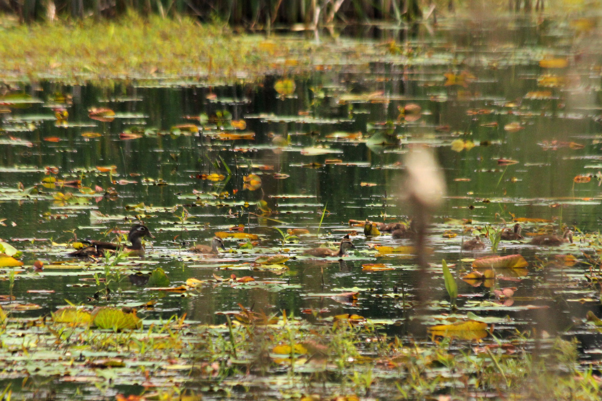 i was hoping to see some male wood ducks but the marsh grass was too tall so they were obscured even if they were there. however, we did spot a female wood duck with a group of maturing ducklings. why do i feel like i've never seen male wood ducks in the wild before? i have, but always from a distance, so not very clearly. i'd like to see one up close for a change.