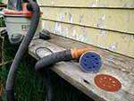 i managed to sand about a 3x3ft square area of shingles in about an hour, taking a few breaks in between. i'm not planning on sanding off all the paint, just enough so it's smooth to the touch. it's a little tedious, the sander starts feeling heavy after a while (plus it's vibrating the whole time), and there was also the afternoon sun. i noticed that if i hold orbiting sander at it edge, it seems a lot better, essentially stripping off the paint (and the wood if you're not careful). i didn't put down any tarps and there wasn't all that much dust but there was still a little bit that clung to the sander and to my arms. when the paint did come off, it was more likely in the form of dried chips. at this rate, if we get a couple days of good weather, i might be able to get the sanding done in 2 weeks. about half the house still requires sanding, but we're fortunate that my parents live in a one story structure. the hardest part is the western side, but once that's done, the front of the house will be pretty easy (shady at least, won't have to deal with the blistering sun).