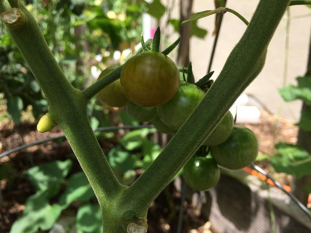 i took an occasional break to rinsing off the flecks of paint from my body, water the garden, pull up some weeds, and get a drink of water. by noontime the sun was beginning to peek around the corner. i kept working until 1:00, when finally the sun was just too much to handle. i think i may have even gotten a slight sunburn on my right arm (the side facing the sun).