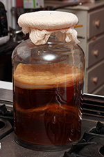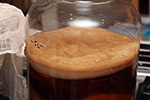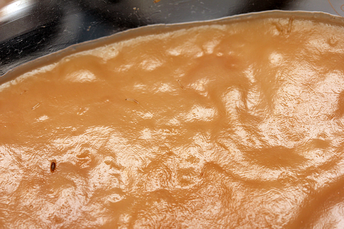 * dumping out my overripe kombucha invaded by fruit flies (and their maggots). originally i planned on keeping it, figured i could just brush off the maggots. that sort of shows how far i've fallen in terms of risky food eating threshold. maggots on my food? oh, no problem, it's still edible! pouring out the aged kombucha, i was still tempted to taste it so i took a sip. so sour! i ended up spitting it out.