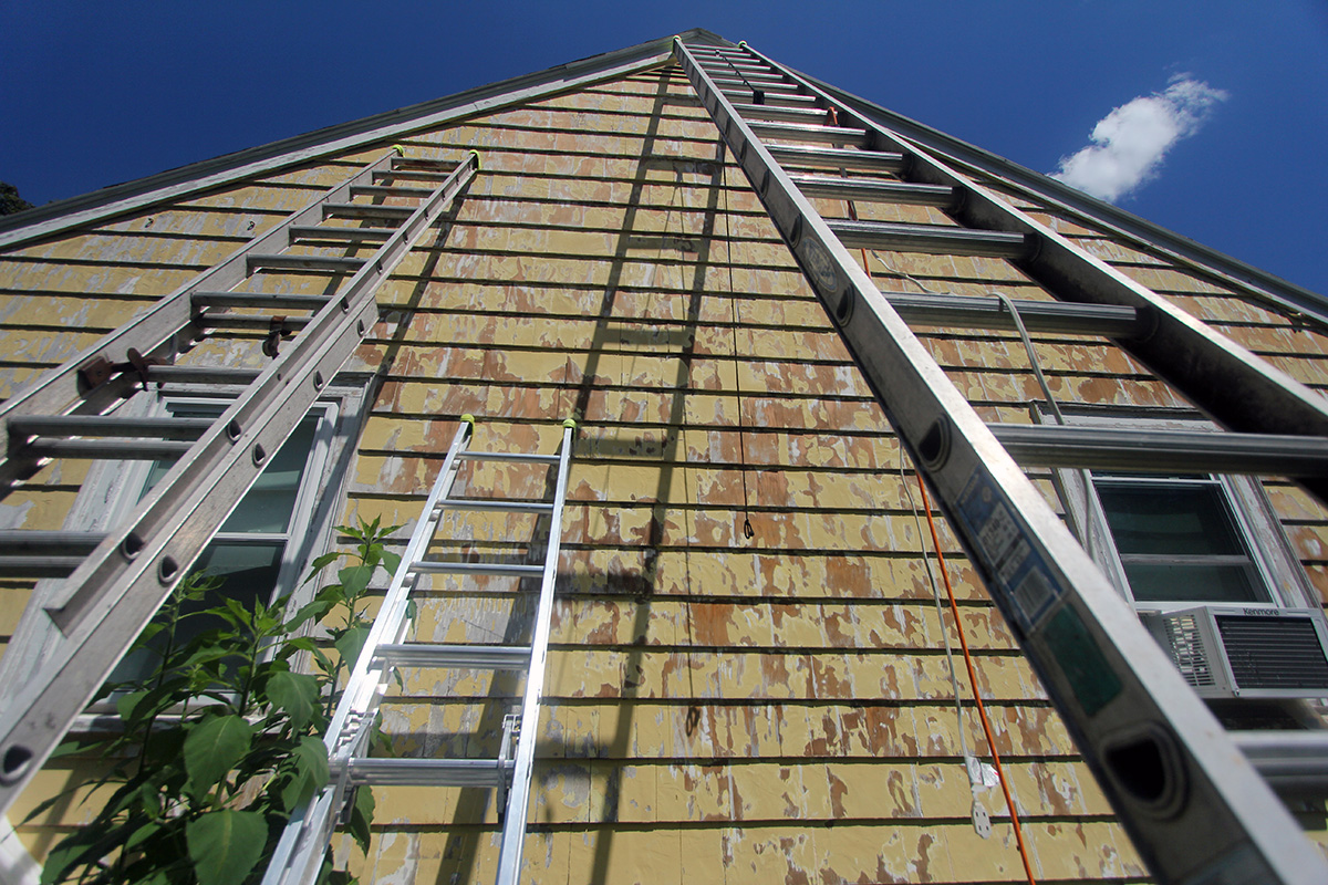 * today's sanding region: center-center (below the tallest ladder) and a bit to the left of center. listening to mp3 player but it ran out of batteries so switched to android phone listening to a streaming 80's music radio station (much better than talk radio).