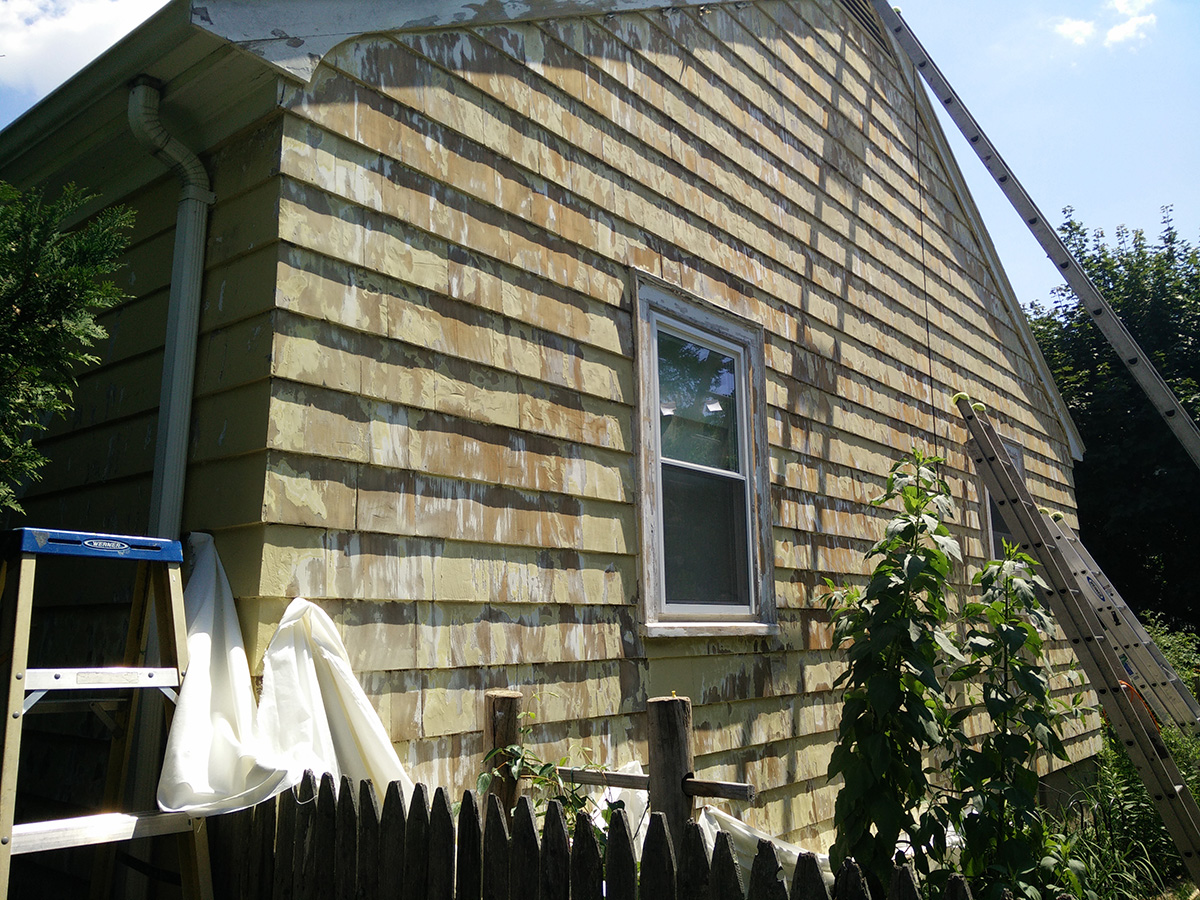 i arrived in belmont at 9:00 and immediately started sanding. today i worked on the left edge of the western wall, touch up work. i brought out the belt sander and the shop vac, but i ended up using the orbital sander as-is, emptying out the dust collection bag every 20 minutes or so. i stopped working by 1:00, the combination of the heat plus the sun making it uncomfortable to be outside. by 1:30 i had everything cleaned up and taken a shower. my mother came home soon afterwards, an hour later my came back as well. my sister showed up too, dropping off hailey, returning a few hours later to collect her.