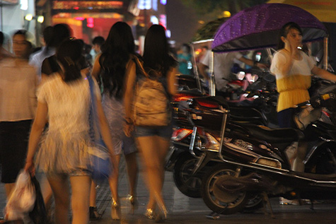 in chengdu i stayed at the haiyo hotel. since it was my 3rd time in chengdu, i knew the city fairly well, at least the parts i've visited before. from the train station i took the subway to chunxi lu, the nearest station to the hotel, which was still about a 20 minute walk. i had my large backpack and was too tired to walk it, so i was on the lookout for a taxi. unfortunately i had a hard time hailing one, my technique not aggressive enough versus the natives. some scooter drivers noticed me and told me they could take me to my hotel. at first i was hesitant, since it didn't seem like my backpack would fit on a scooter, but one of them convinced me that it would (wedged in the footrest area) so i agreed. riding a scooter is probably the fast way to get to anywhere in chengdu, especially when the driver is willing to go in the opposite direction of one way streets!