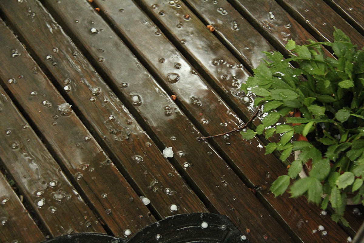when the storm finally arrived, it was pretty exciting. it started with a heavy torrential rain, then punctuated by ice pellets that grew progressively larger. they ranged in size from rock salt crystals to boba tapioca balls, with occasional hail the size of large marbles. i didn't see any golfball-sized stones nor any baseball-sized stones like some people were saying. i even tried a few of the ice pellets, very cold. i had my window opened at one point to take photos, and hail ricochet into my living room like bullets. it didn't last very long, and the ongoing rain soon melted all the ice pellets. finally, the rain stopped, the sun appeared, and the clouds disappeared.