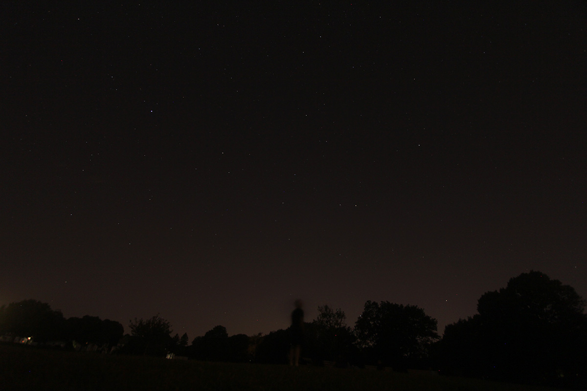 i arrived around 12:30. what surprised me was how many cars were parked outside the park. there is no overnight street parking in arlington, but here were all these cars. the place must've been crawling with other like-minded stargazers, but i couldn't see them in the dark. i found a spot along the side of the hill facing boston and put down my towel so i could lie down. when i got there the sky was full of stars; as soon as i settled in, clouds began to roll in. the clouds didn't leave until 2:00. up to that point i'd only seen 4 shooting stars. once the sky was clear, i saw about a dozen more, before the police came. i was very quiet, but a large group of people were being noisy and a neighbor complained (at one point i heard a man yelling from a house, "go home!" when the police finally showed up). the police took everyone's information before we left.