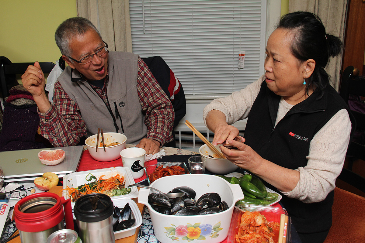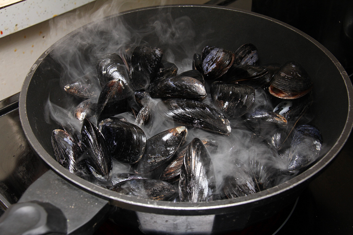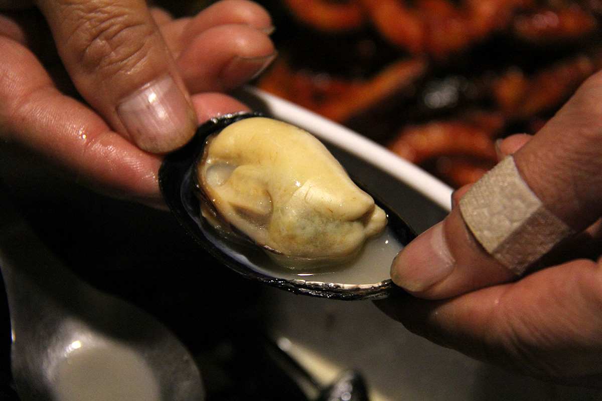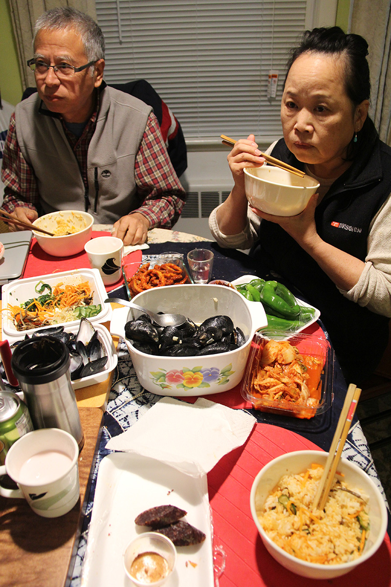 once we got home, it was non-stop eating. first it was all the korean food we got from h-mart, then we steamed the mussels from market basket in a broth of white wine, butter, garlic, and salt. the mussels themselves seem kind of suspect, with no origin stamp or labels of any kind. perhaps these were local mussels? the shells seem different too, darker than usual. so imagine our surprise when after we cooked them we discovered they contained the largest mussels we've ever had, so even big enough to completely fill the shell. on top of that we also had some korean bibimbap rice. and i drank a whole 32 oz. bottle of strawberry kefir chased down with another can of pomegranate seltzer. i ate so much i felt like puking afterwards.