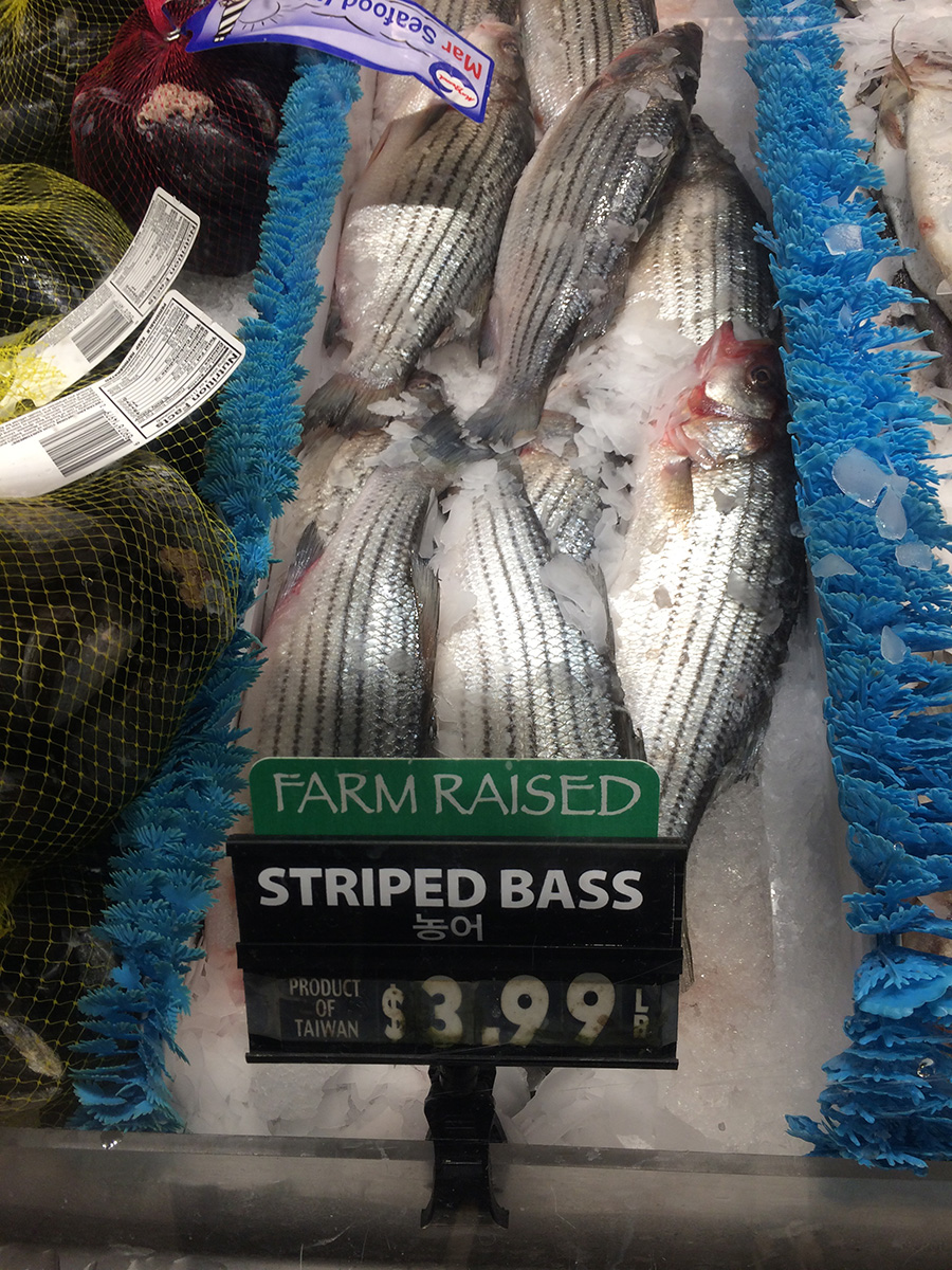 i went with my parents to burlington to run errands. first to jo ann fabrics for my mother to pick up some yarn with a 25% off everything coupon (unfortunately jo ann doesn't have a large yarn selection). then market basket next door in search of black cherry jones soda. finally h-mart for some asian groceries. we saw farm-raised striped bass for sale, the same type of fish my aunt picked up from their friend on the cape. the store bass had 2 different prices: $6.99/lbs for USA, $3.99/lbs for taiwanese import. the fish looked tiny by comparison (the wild one that we got was 40" long).