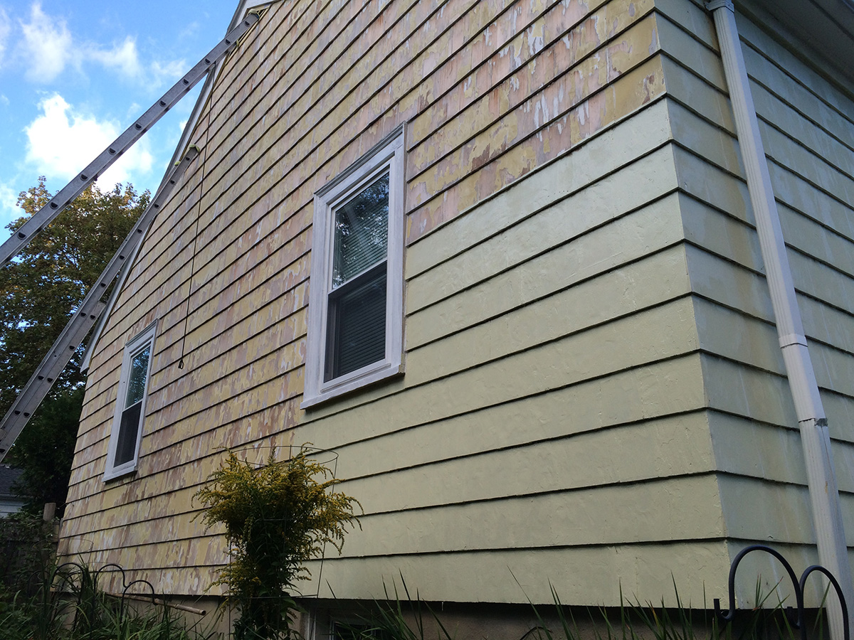 soon we were back outside. i'd just finished sanding, and would now start priming again with the white. i did the 2 bedroom windows and primed the fascia (7 ladder hops). my father did all he could do with the brush and transferred to a roller. he discovered the roller works better painting horizontal than vertically. it's amazing how much faster painting with a roller versus a brush. just by himself, he'd nearly finished painting the whole house, but by the time he got to the western wall, he'd finished the gallon of new paint he'd bought today and could only do a corner. it was late enough that he didn't bother opening up another can of paint. i'd set up my sports cam to do a time lapse record of the progress but it will have to wait until tomorrow.
