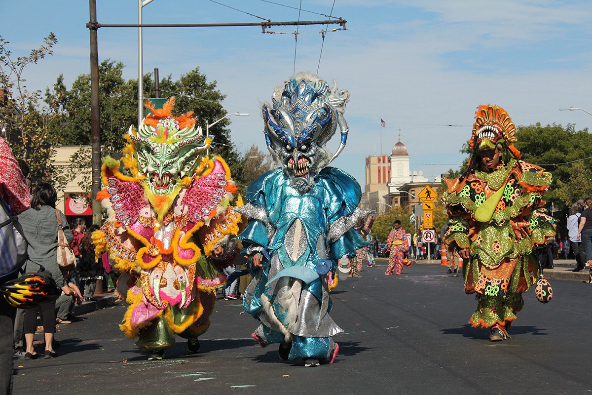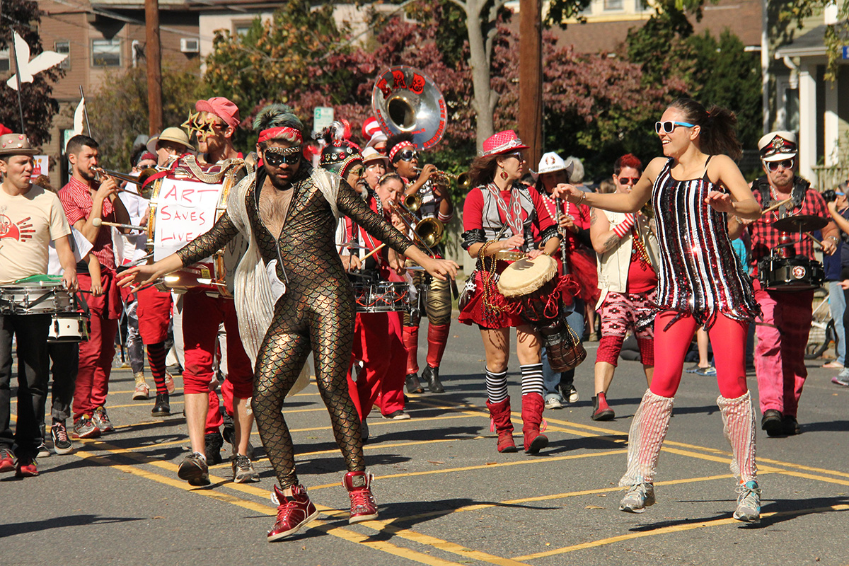 i left for the honkfest parade at 11:40am, overestimating how long it'd take me to get to elm-beech, where i traditionally watch the procession beginning at 12pm. i took the bicycle instead of the motorcycle, simply because a bike is easier to park. fortunately the parade didn't actually kick off until 12:15pm. never noticed it before but camberville seems to have a large population of hipster dads, with their dad beards, pushing strollers. i watched most of the procession from the street corner before i became impatient and walked down to see how much more of the parade was left. i then returned to my bike and rode down to the intersection of mass ave and garfield to see the parade again. by that point half of the parade had already passed (so maybe it would've been faster had i rode my motorcycle instead).