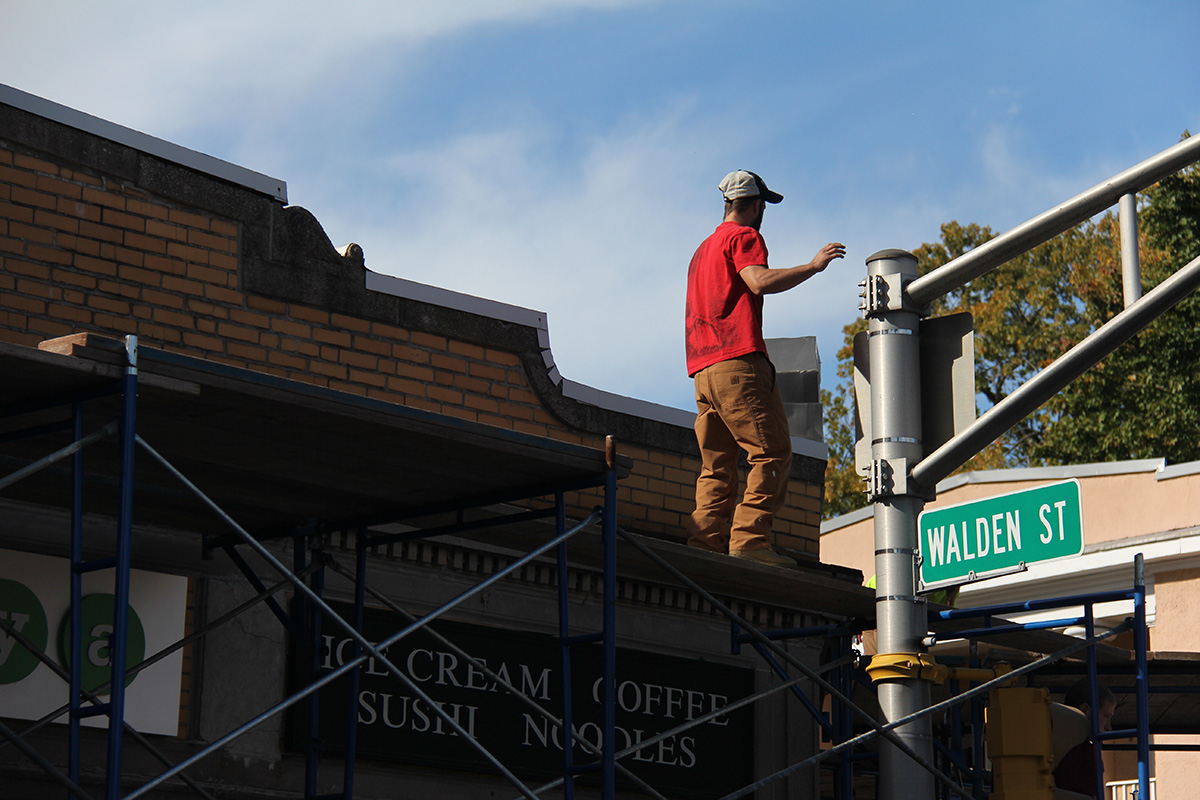 i white primed the fascia/soffit of the eastern and southern side of the garage and the southern side of the sun room. i also primed the basement door both inside and outside.