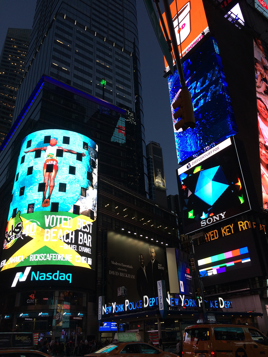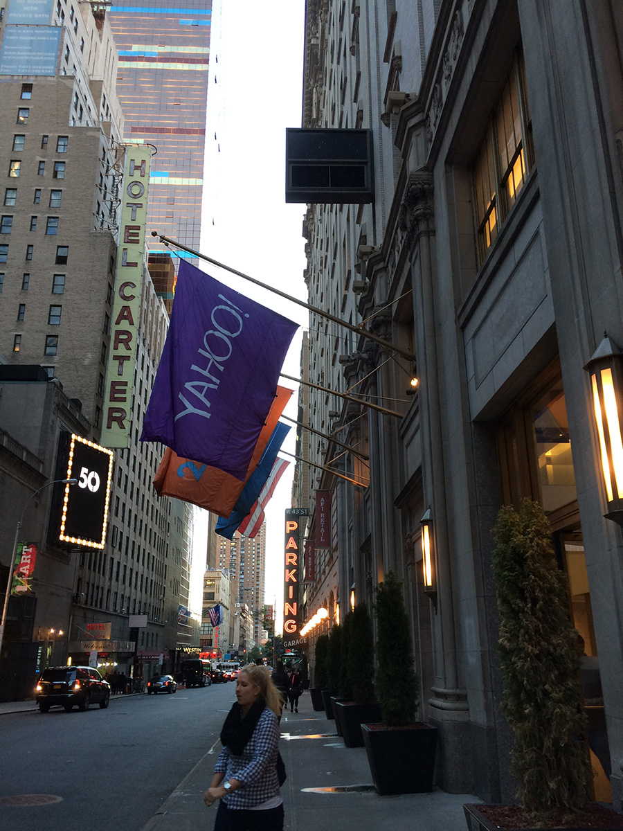 when john told me his office was in time square, i didn't think it was next to time square. i fought my way through the crush of tourists and hawkers and arrived the yahoo building, where john had his office. i called so he could come down and let me in.