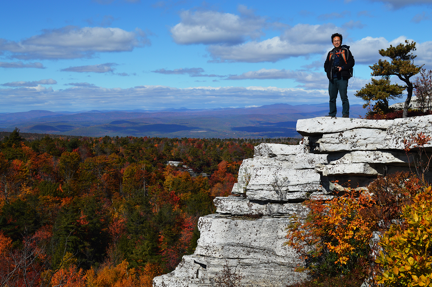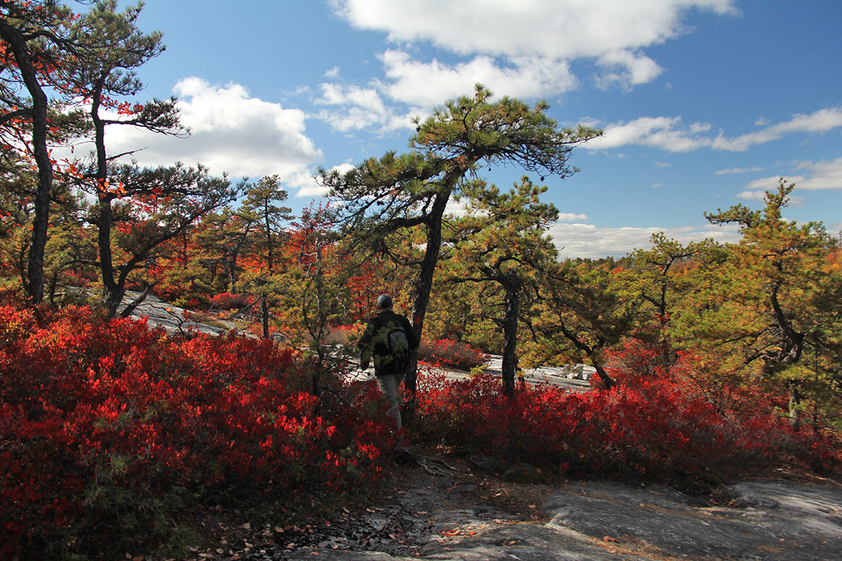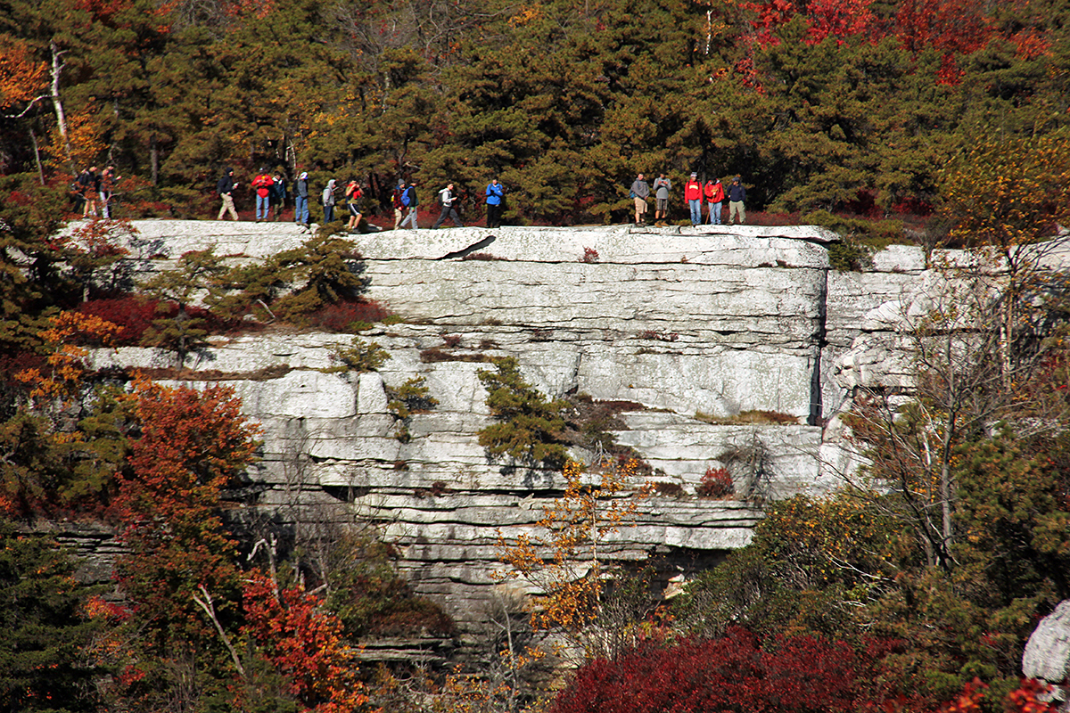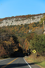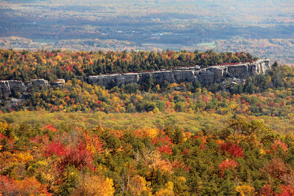 we proceded to drive into the park entrance, which was still a few miles away. as we got closer, i could see the shawangunk ridge rising out of the landscape like a giant rock wall, the top of which would be our hiking destination. when we arrived at the entrance a bit before 9am, there was a crowd of cars outside. after we got in line,