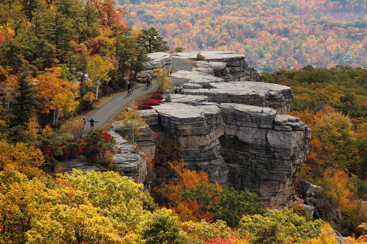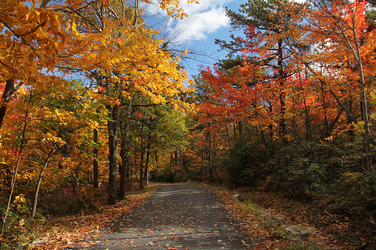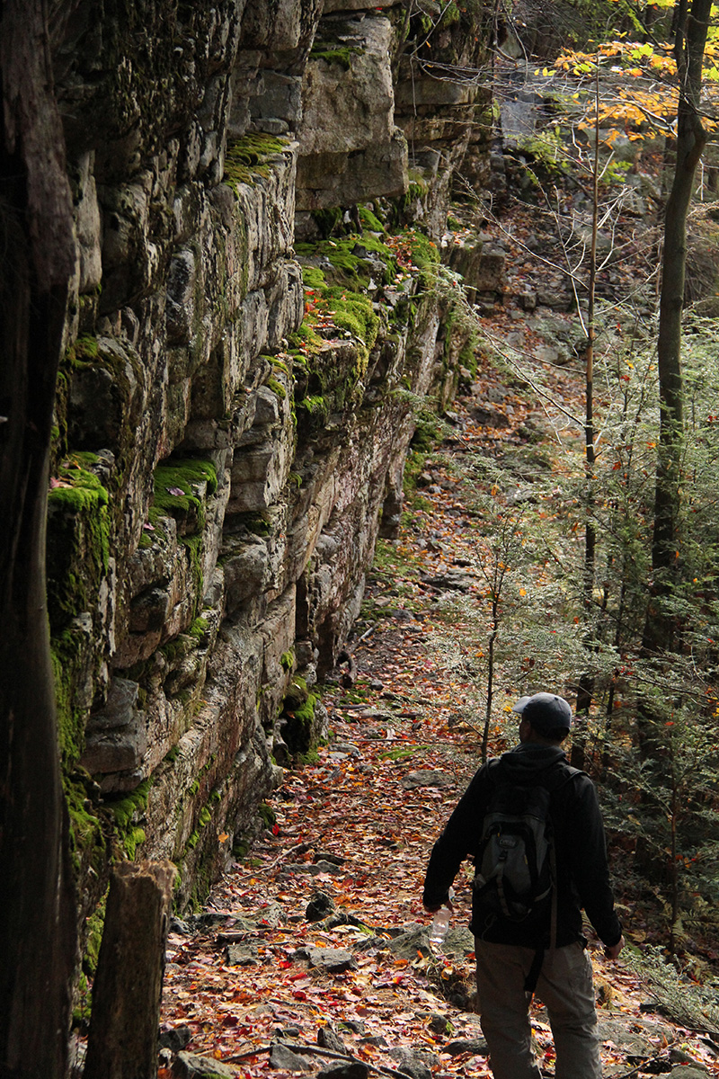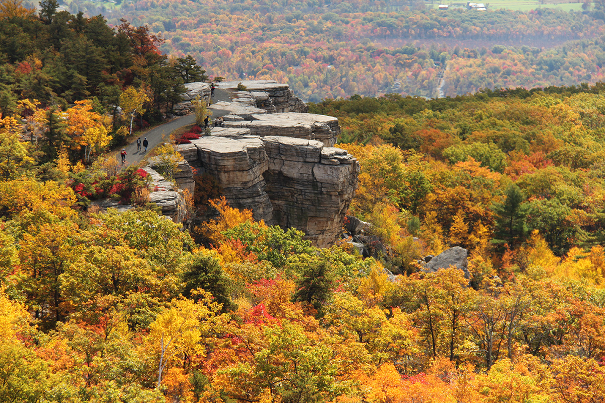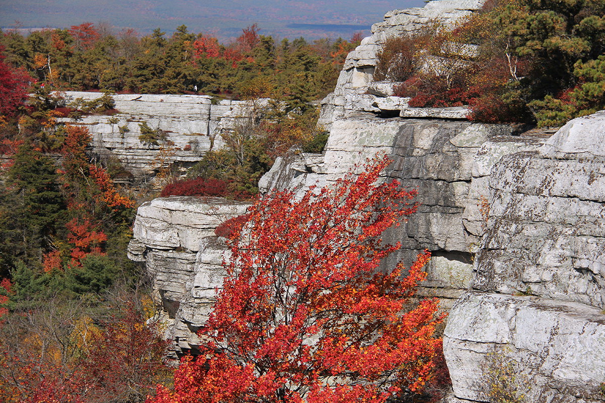 we proceded to drive into the park entrance, which was still a few miles away. as we got closer, i could see the shawangunk ridge rising out of the landscape like a giant rock wall, the top of which would be our hiking destination. when we arrived at the entrance a bit before 9am, there was a crowd of cars outside. after we got in line,