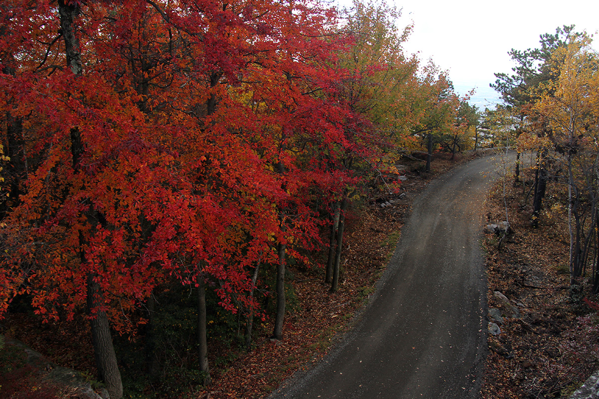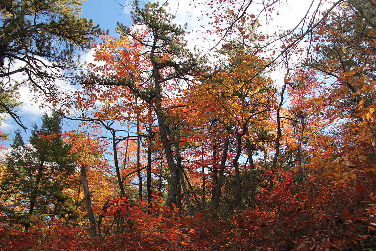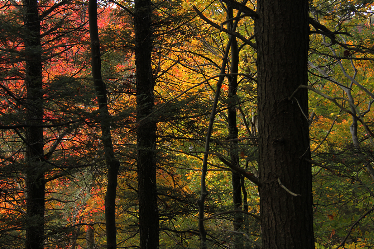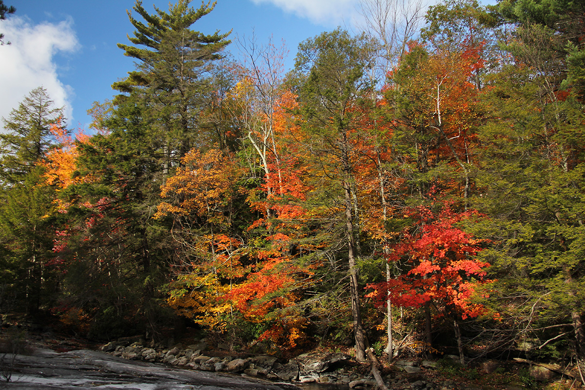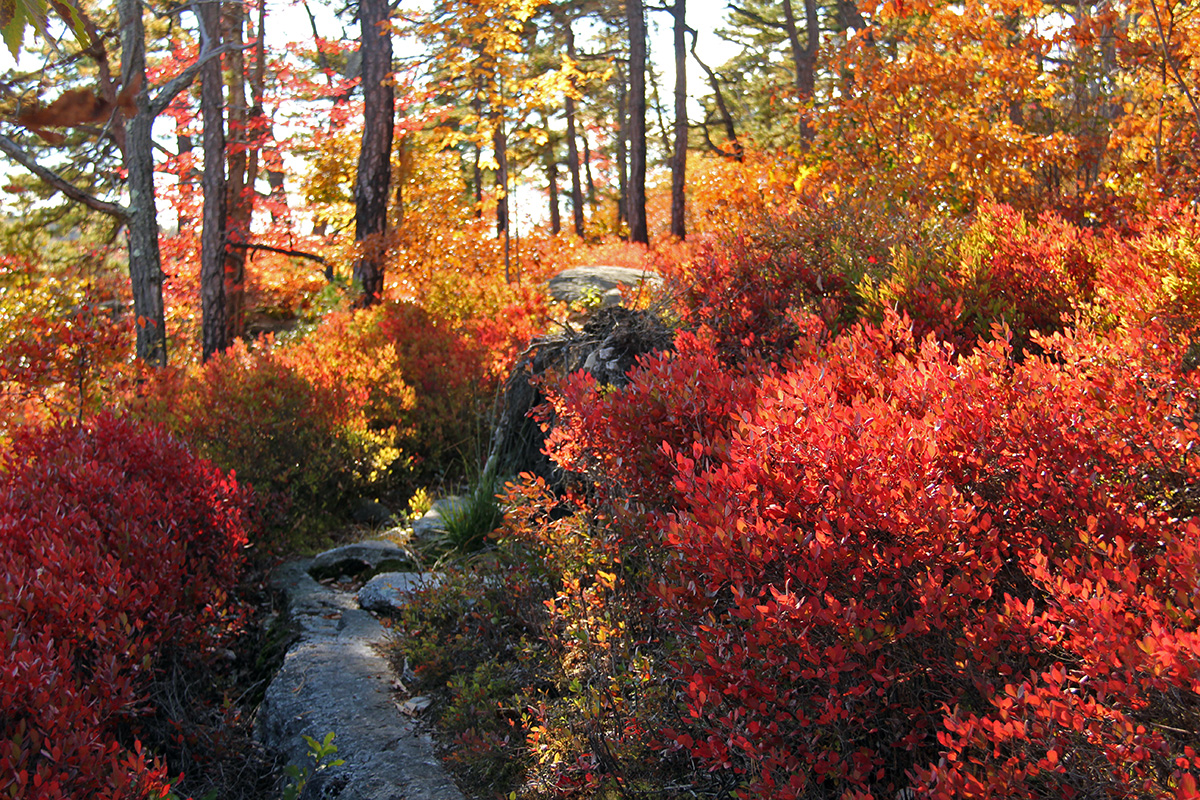 we proceded to drive into the park entrance, which was still a few miles away. as we got closer, i could see the shawangunk ridge rising out of the landscape like a giant rock wall, the top of which would be our hiking destination. when we arrived at the entrance a bit before 9am, there was a crowd of cars outside. after we got in line,