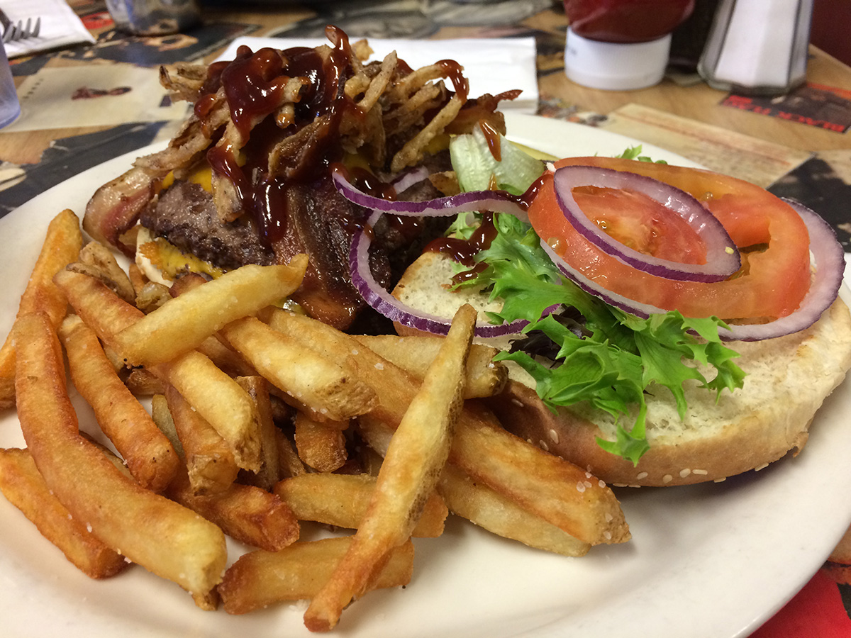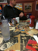 burrito place had a wait time of 40 minutes. we ended up going to a burger joint. i treated, john ended up paying for gas before we left town.