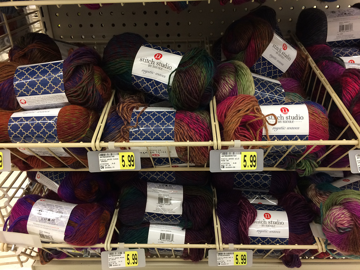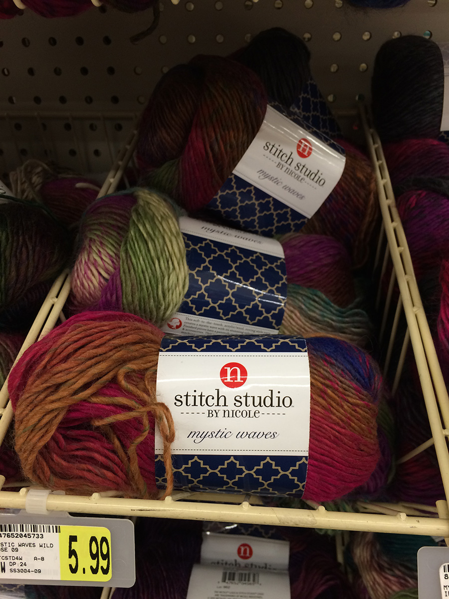 first stop was ac moore at assembly square, where i was picking up a skein of lion's brand landscape yarn for my mother. i'd already picked the yarn and verified it with my mother before i saw the display of stitch studio mystic waves yarn. they look similar and priced the same ($5.99), but mystic waves is 30% wool while landscape is 100% acrylic. i decided to get the wool yarn instead, and picked a purple colored skein. i had a 50% off coupon but the cashier did me a favor and used her 55% off coupon instead. knitting people stick together!