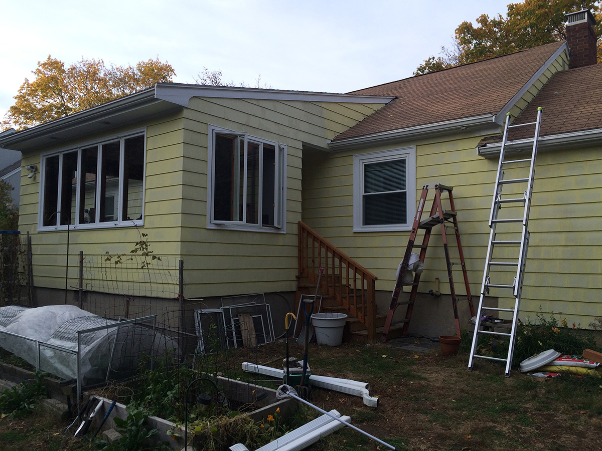today we worked on the southern side of the house, beginning from the back of the garage. i edged with a small stain brush and a foam brush (detail work),