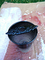 i went out again briefly to coat the old doorbell plate with some black spray paint. maybe it would've been easier to buy a brand new doorbell kit. but the old plate was perfectly fine, just needed a fresh coat of paint, so i only needed to replace the doorbell button itself. i was in a rush to get this done because we needed to install the doorbell for tomorrow night, when the trick or treaters will be out.