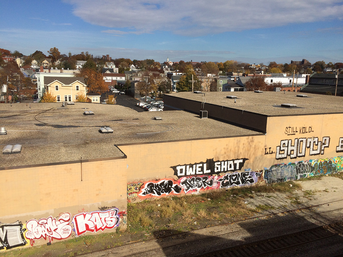 exploring further upstairs revealed a hardwood deck with an expansive panoramic view of somerville, cambridge, and boston. the only caveat is the condo sits right behind the commuter rail, and has an ugly view of some graffiti walls which constantly reminds you that it's not the best of neighborhoods. for a million dollars, there might be better options out there that are still in the area.