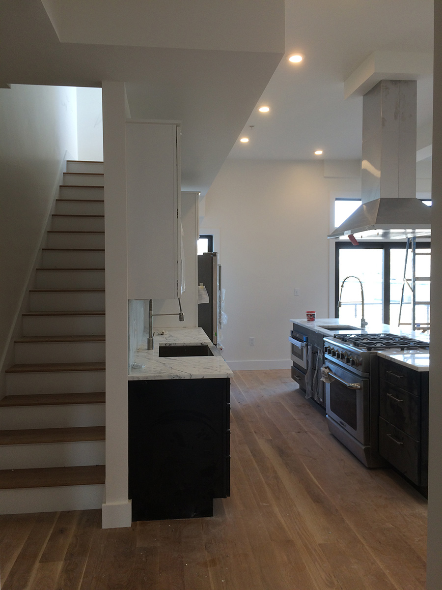 taking my usual shortcut through properzi way, i saw the open house sign for the new condos built on the former barrel factory land. curious, i stopped to check it out. 6 units total, each one selling for about a million, with 1-2 parking spaces per unit. one of two penthouse units was already under agreement, but the other one was still open and i got a chance to check it out. it's got an amazing kitchen with a 6 burner gas range and an island range hood.