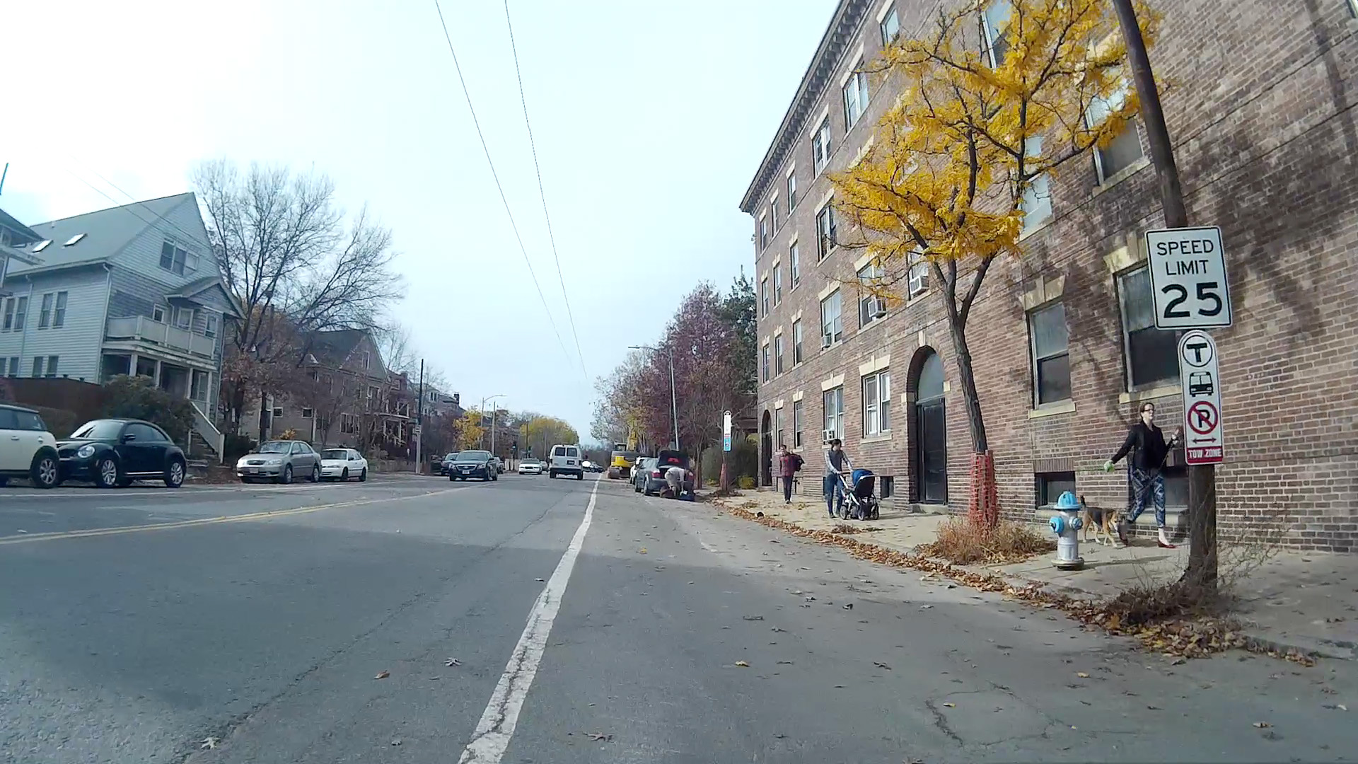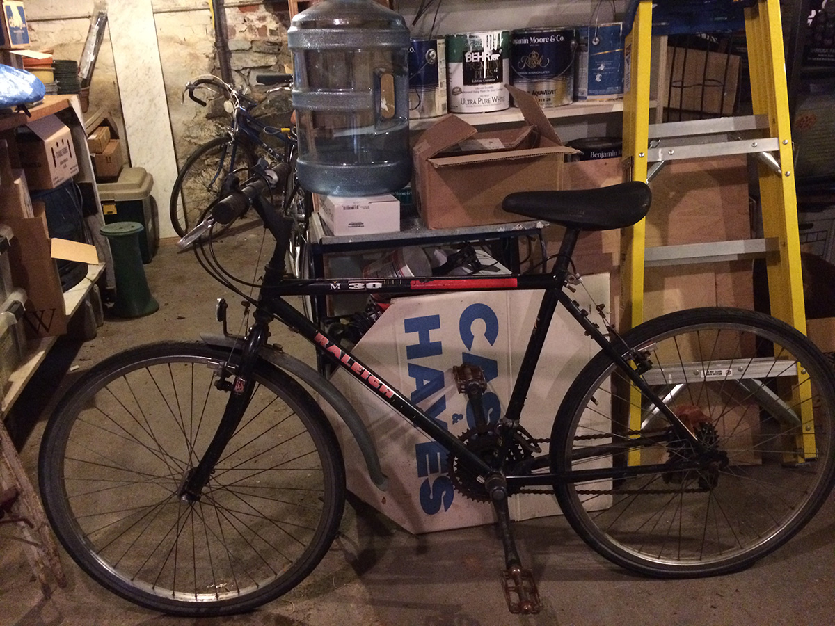i decided to take the bicycle to belmont instead of the motorcycle, just to get some exercise. this would also give me a chance to do another action video. i decided to go real time instead of time lapse, figured i could get a good recording of the late season fall foliage. because i was bringing back some popcorn, i decided to take my cargo bike. while i was at it, i stowed ed's gift bike down in the basement. i tried pumping up the front tire but i could hear it hissing, so the tube needs patching (both tires are flat).