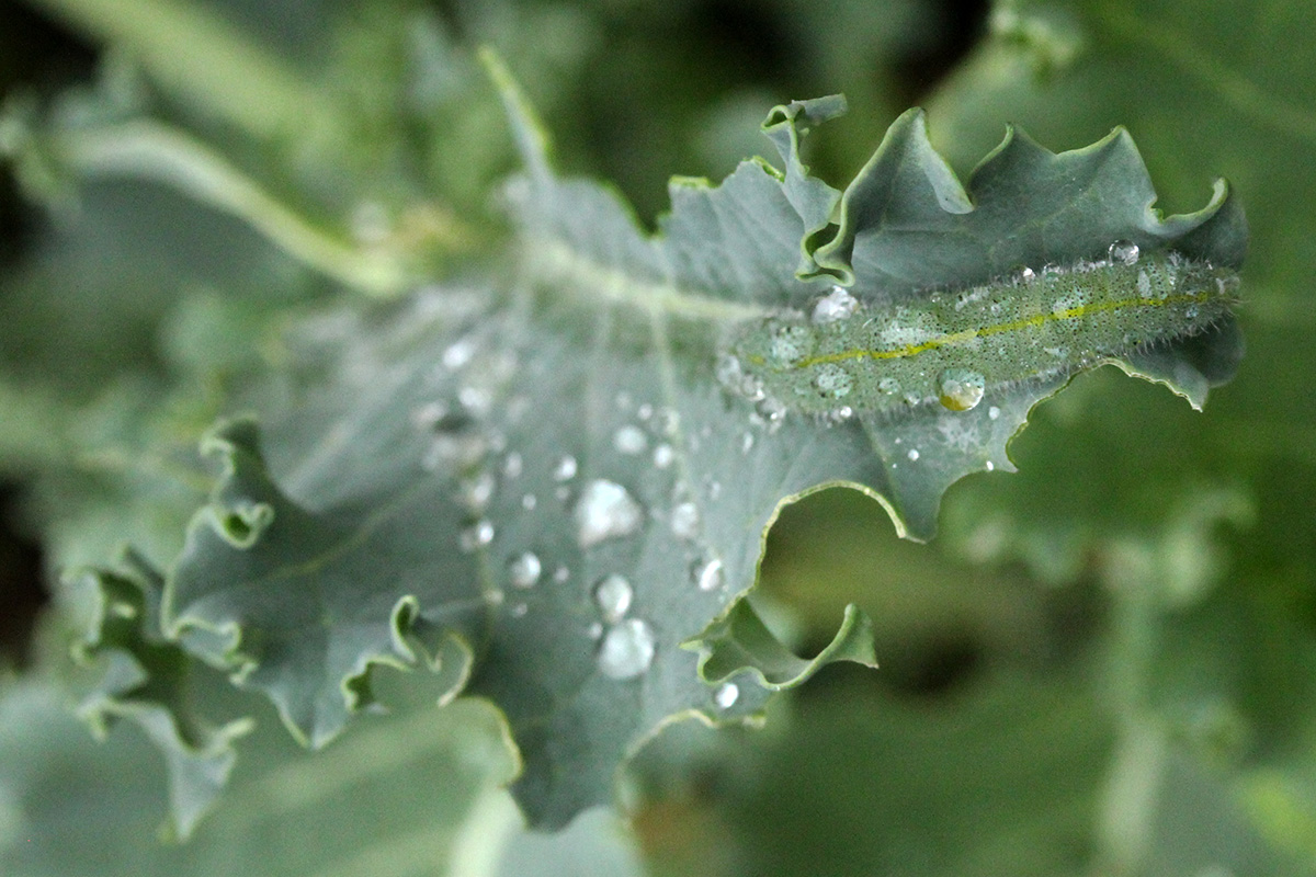 i also had a chance to take a photographic tour of the backyard. looking at our kale plants, i saw a big fat green cabbageworm, which i picked off and threw away in the middle of the lawn. upon further inspection i found even more, and ended up picking about 7-8 worms in total. handpicking is okay, but these worms have great camouflage and sometimes they're hard to see. the only effective treatment is to dust with BT. i thought cold weather would kill them off, but they seem to be pretty hardy. also the kale grow under a row cover, so that provided some additional insulation.