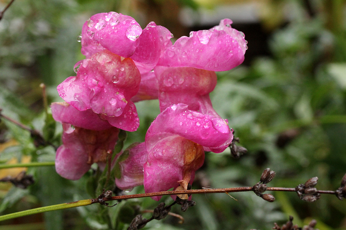 there are still some snapdragons flowering, and a nasturtium flower here and there. snapdragons are semi-hardy, and some of the tougher ones can survive the winter. nasturtiums aren't so fortunate, and the next killing frost will definitely kill them off.