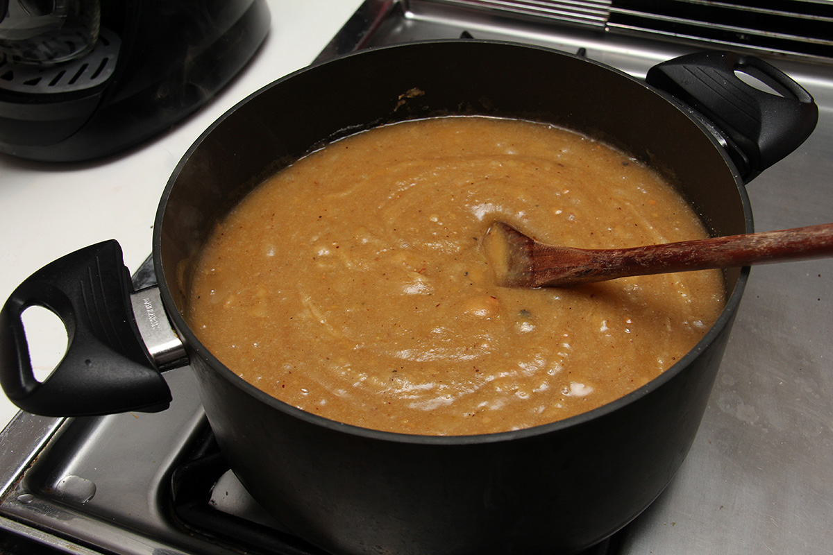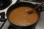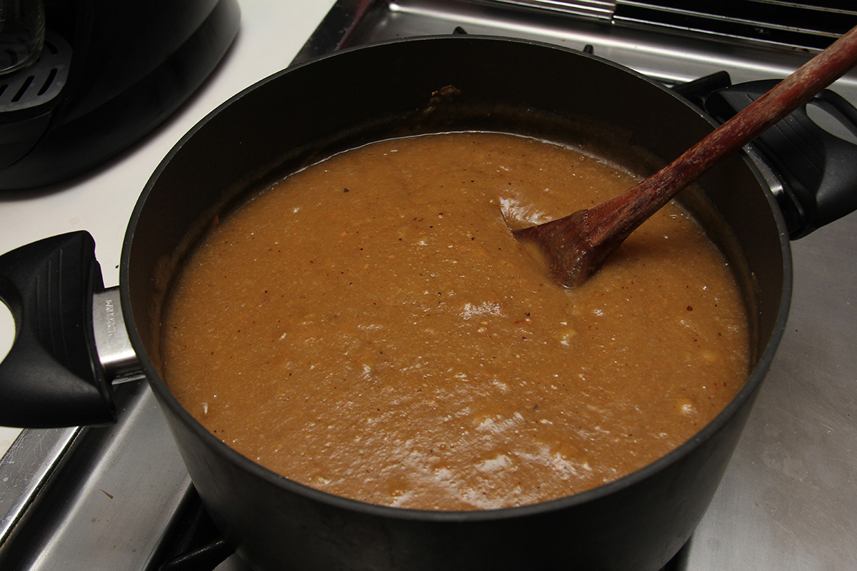 the problem with my membrillo attempt is i was using used quince pulp - now blended into a thick puree. calling it puree seems wrong, it's actually more like a paste. i estimated that i had 6 cups of quince paste. when i tried to heat it in the pot it nearly burned because there was hardly any liquids left in the paste. and when it did manage to heat, the trap air would erupt like an explosion. i ended up adding about 2 cups of water just to reconstitute this concentrated quince solids. that made it better at first, while i then added 6 cups of sugar as well. but as the blend started to heat up, it would bubble molten sugared quince pulp everywhere. so i put the glass lid over the pot. but every few seconds the puree would bubble on the inside, and every time it would shake both the pot and the range grills. it was a very noisy, very messy, very dangerous affair all around. and i had to do this for the next 1-1/2 hours. membrillo seemed like more hassle than it's worth.