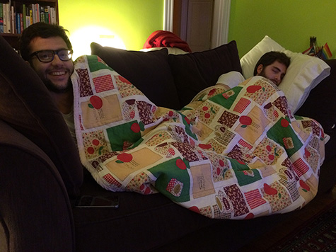 perhaps a bit jetlagged combined with a long walking tour of the city, mauricio quickly fell asleep on the couch while we were all still in the living room. alfonso and i went to our bedrooms so his friend came sleep.