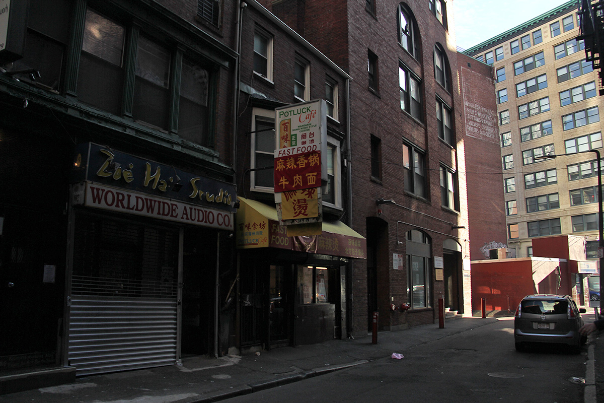 after it was all over, i made my way to haymarket to score some cheap produce. my mother wanted me to pick up some thick scallions and korean green horn peppers, but they're not always in stock at haymarket so i decided to stop by in chinatown first since it was along the way. i went down boylston to essex and stashed my bike along chauncy street, walking to the chinese supermarket in the alleyway on knapp street. their scallions were skinny but they did carry the hot peppers my mother wanted, $2/lbs. i ended up buying a dollar's worth, about 6-7 peppers.
