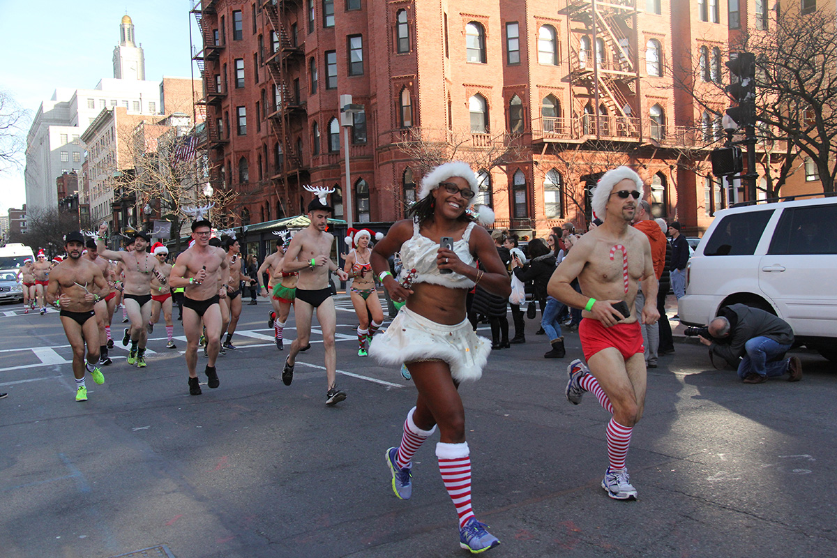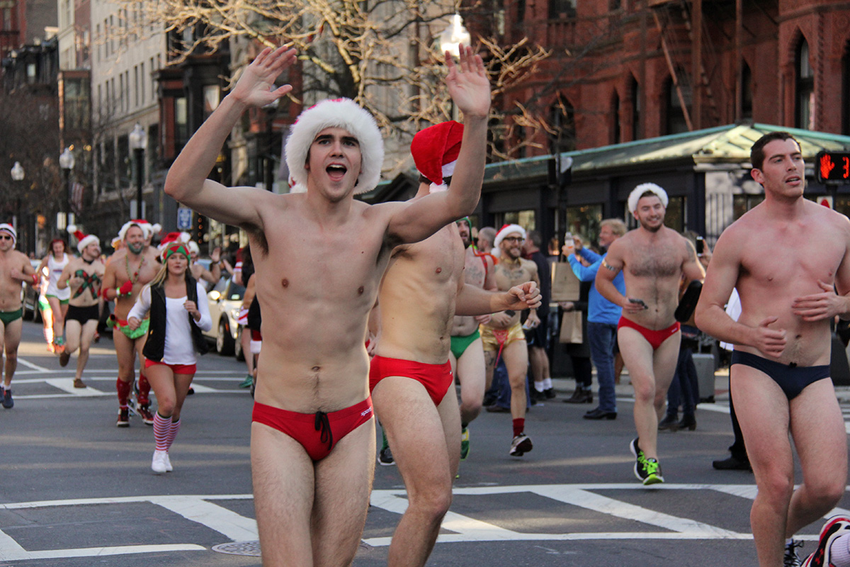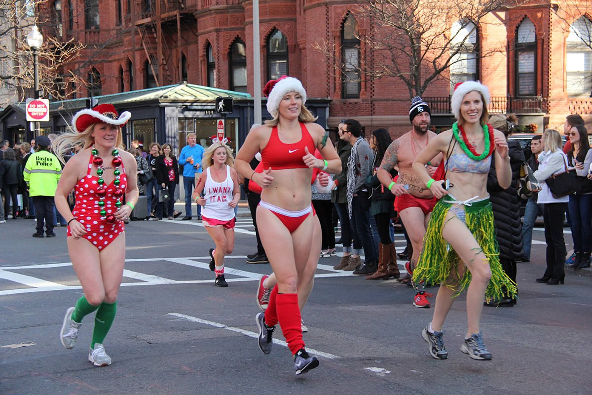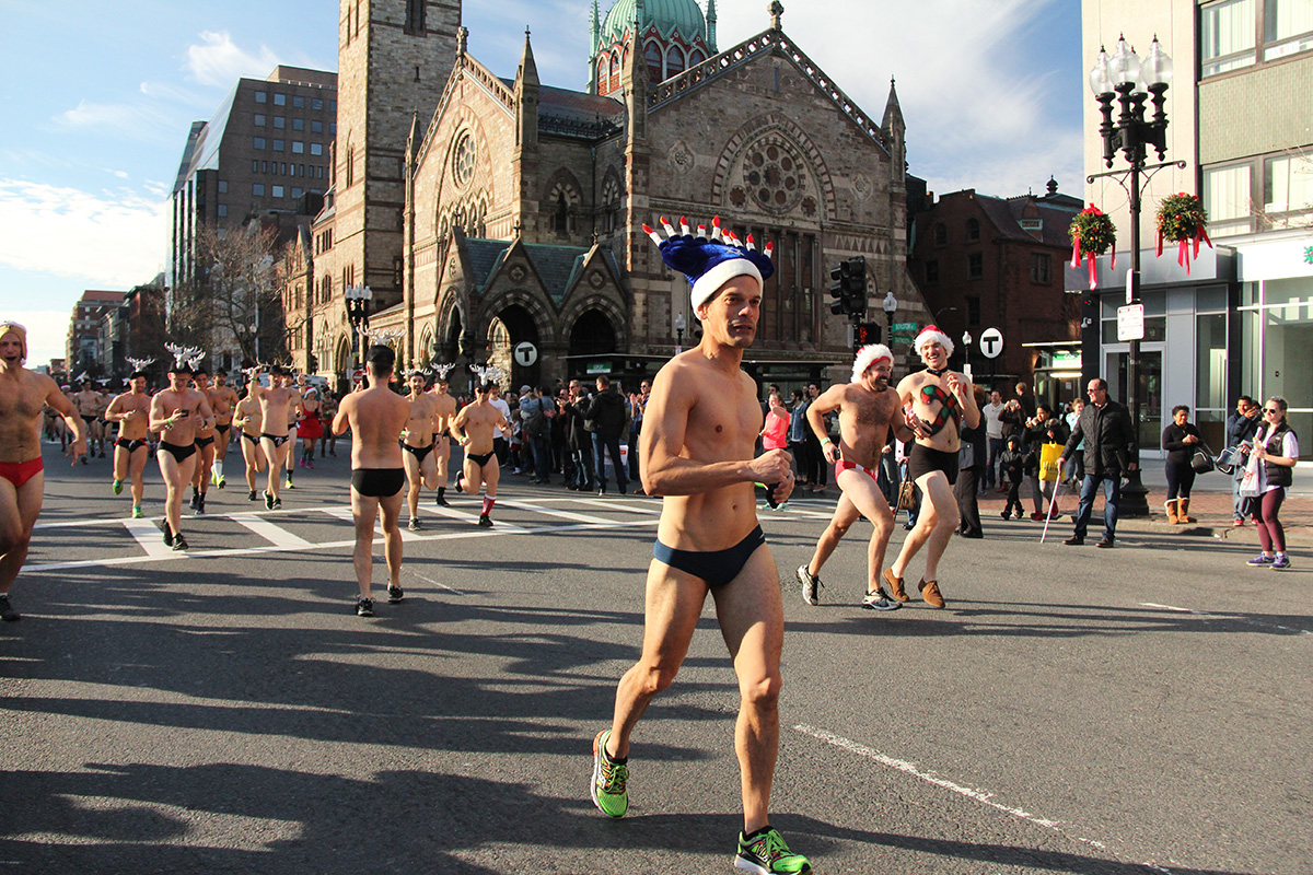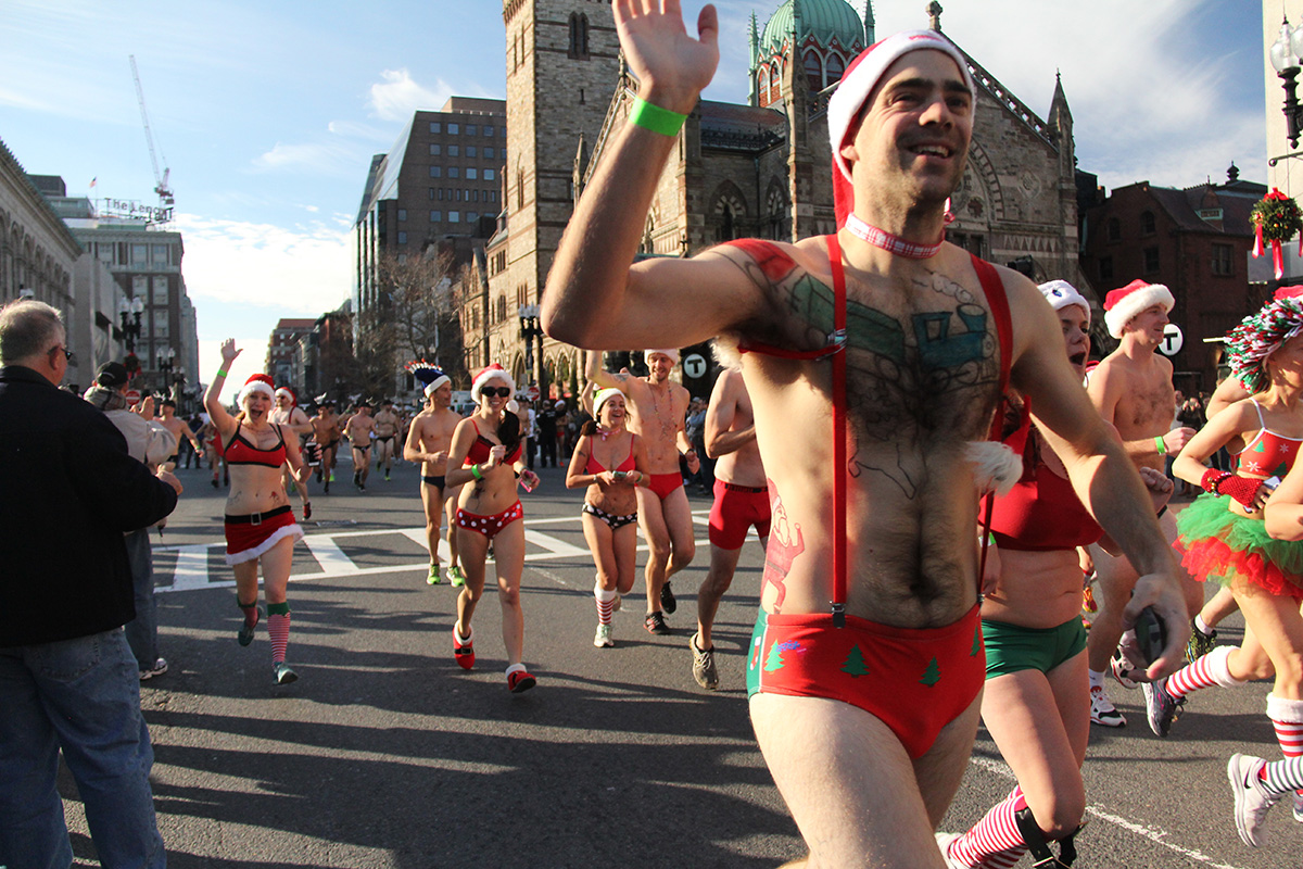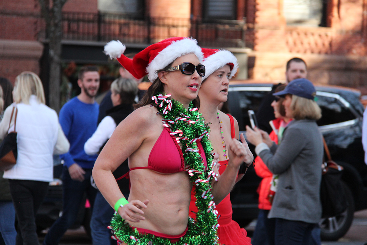 the speedo santa run wouldn't be until 1pm so i had plenty of time this morning to get ready. the only breakfast i had was a leftover portuguese tarts. i left the house a bit after noontime via bicycle. it was an unseasonably warm day with temperature close to 60 degrees. typically the weather for a speedo santa run is cold, which makes it that much crazier to see people running around in underwears and swimsuits. now with the temperature more spring than winter, what's the challenge in that? i heard because of el niño this year, it will probably be warm here in boston all the way until mid-january. maybe they should change the name of the run to "summer in winter" if this warming trend continues.