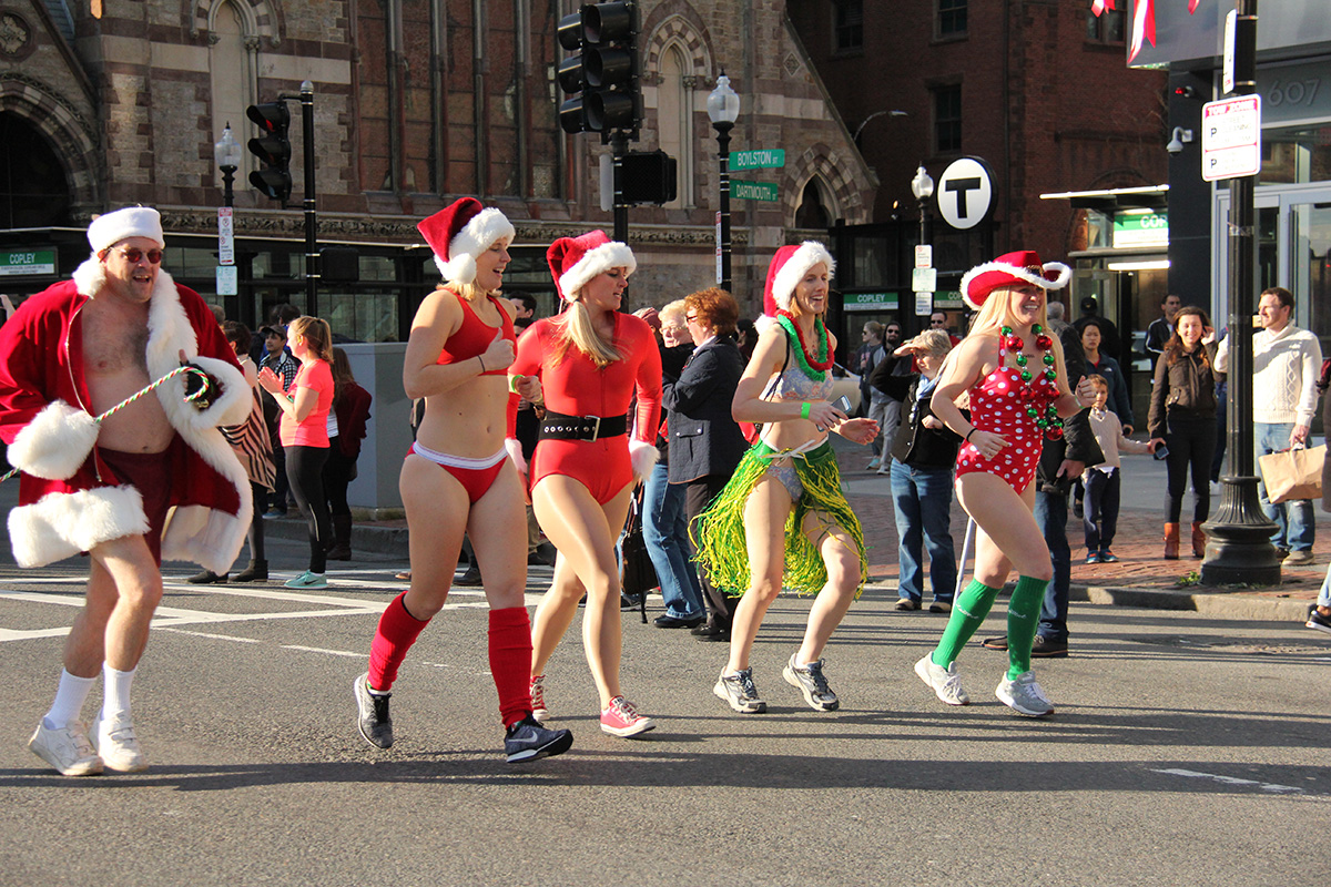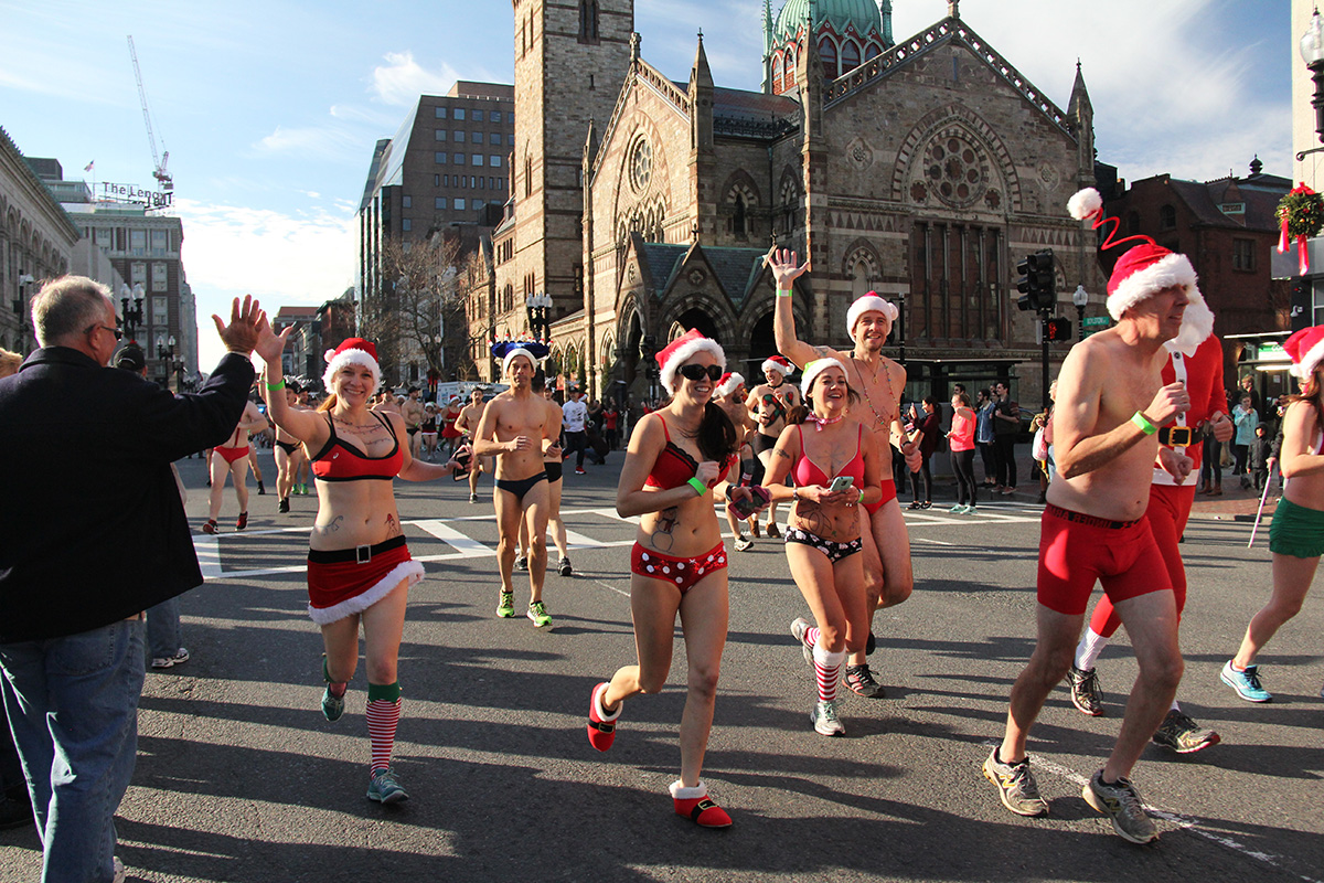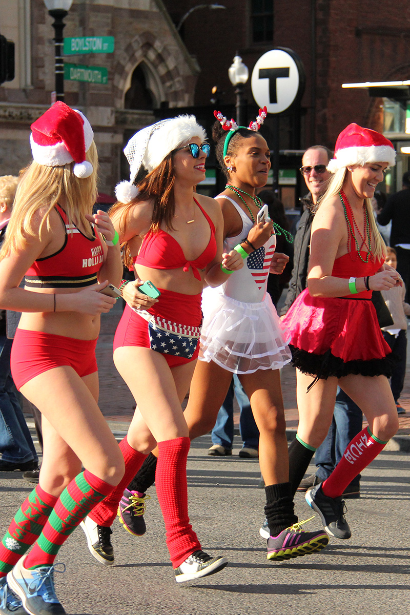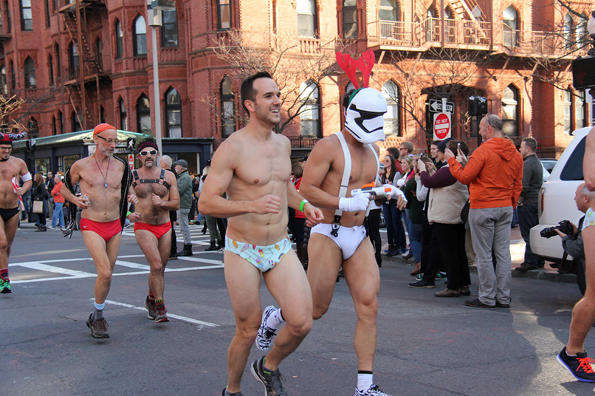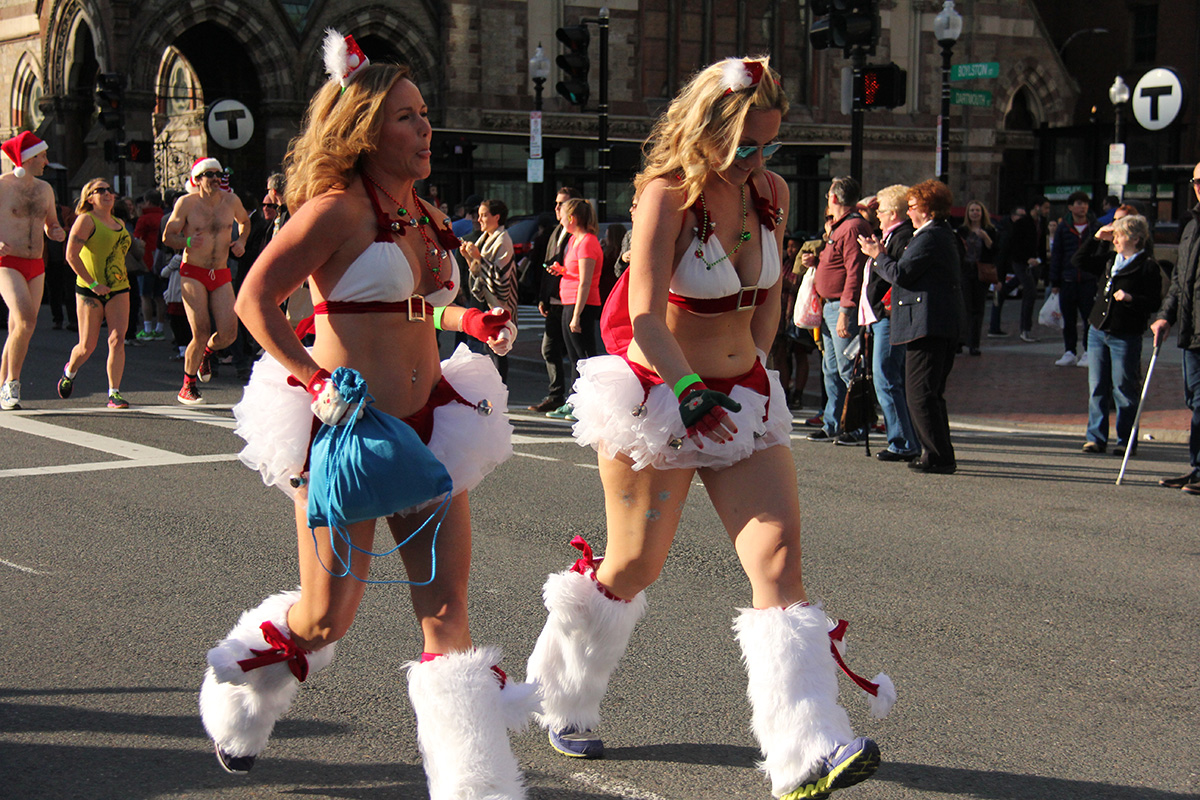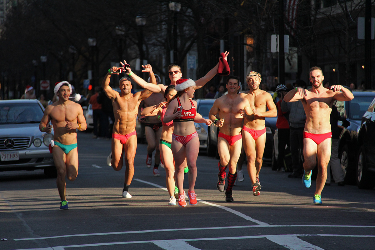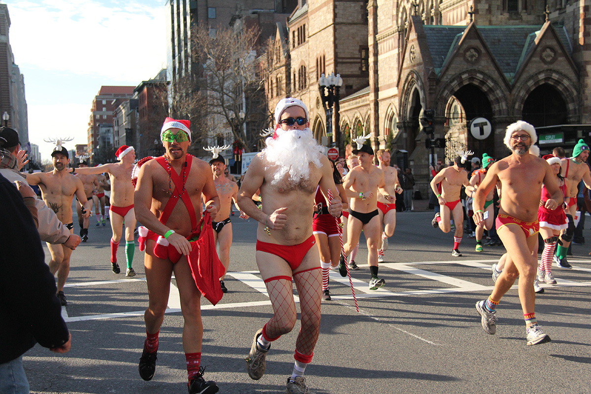 the speedo santa run wouldn't be until 1pm so i had plenty of time this morning to get ready. the only breakfast i had was a leftover portuguese tarts. i left the house a bit after noontime via bicycle. it was an unseasonably warm day with temperature close to 60 degrees. typically the weather for a speedo santa run is cold, which makes it that much crazier to see people running around in underwears and swimsuits. now with the temperature more spring than winter, what's the challenge in that? i heard because of el niño this year, it will probably be warm here in boston all the way until mid-january. maybe they should change the name of the run to "summer in winter" if this warming trend continues.