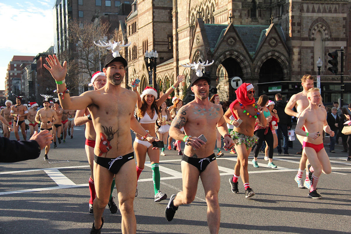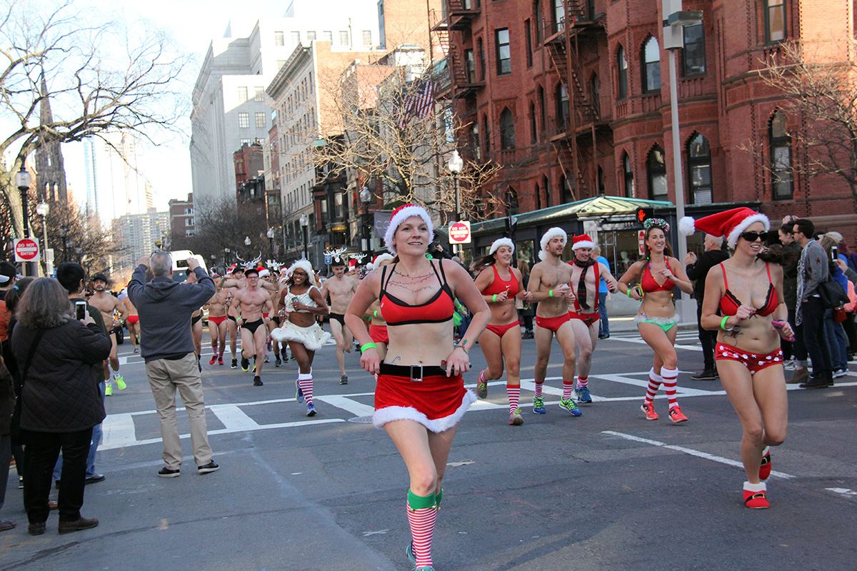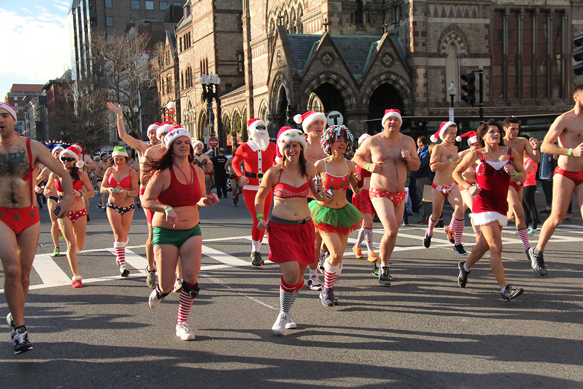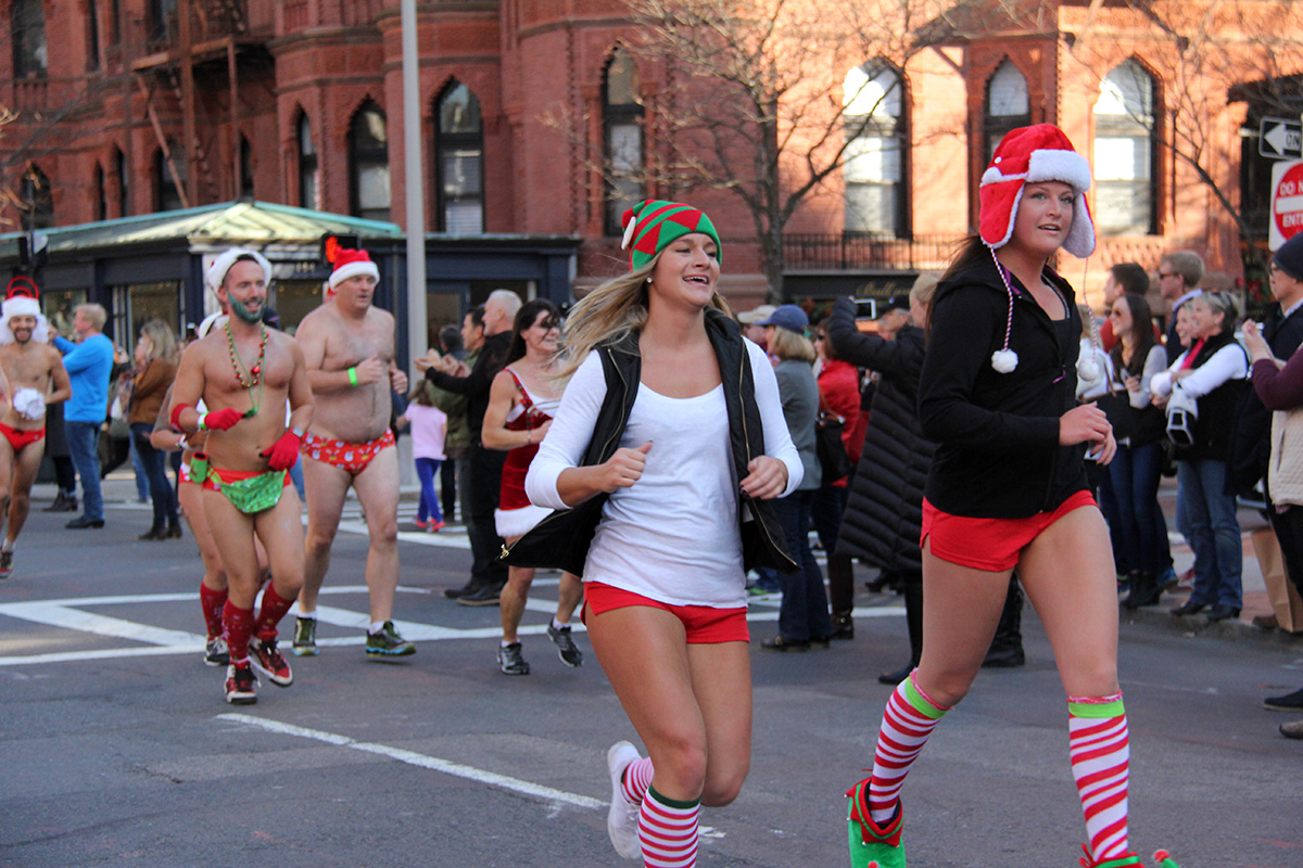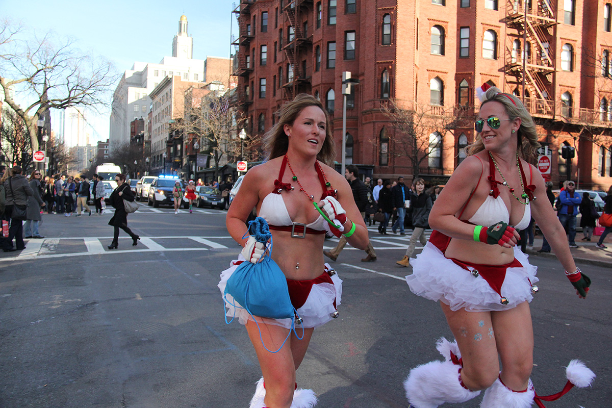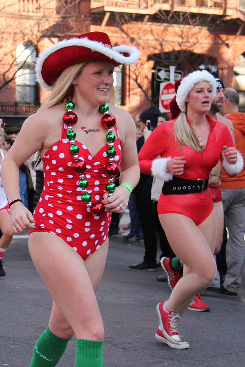 the speedo santa run wouldn't be until 1pm so i had plenty of time this morning to get ready. the only breakfast i had was a leftover portuguese tarts. i left the house a bit after noontime via bicycle. it was an unseasonably warm day with temperature close to 60 degrees. typically the weather for a speedo santa run is cold, which makes it that much crazier to see people running around in underwears and swimsuits. now with the temperature more spring than winter, what's the challenge in that? i heard because of el niño this year, it will probably be warm here in boston all the way until mid-january. maybe they should change the name of the run to "summer in winter" if this warming trend continues.