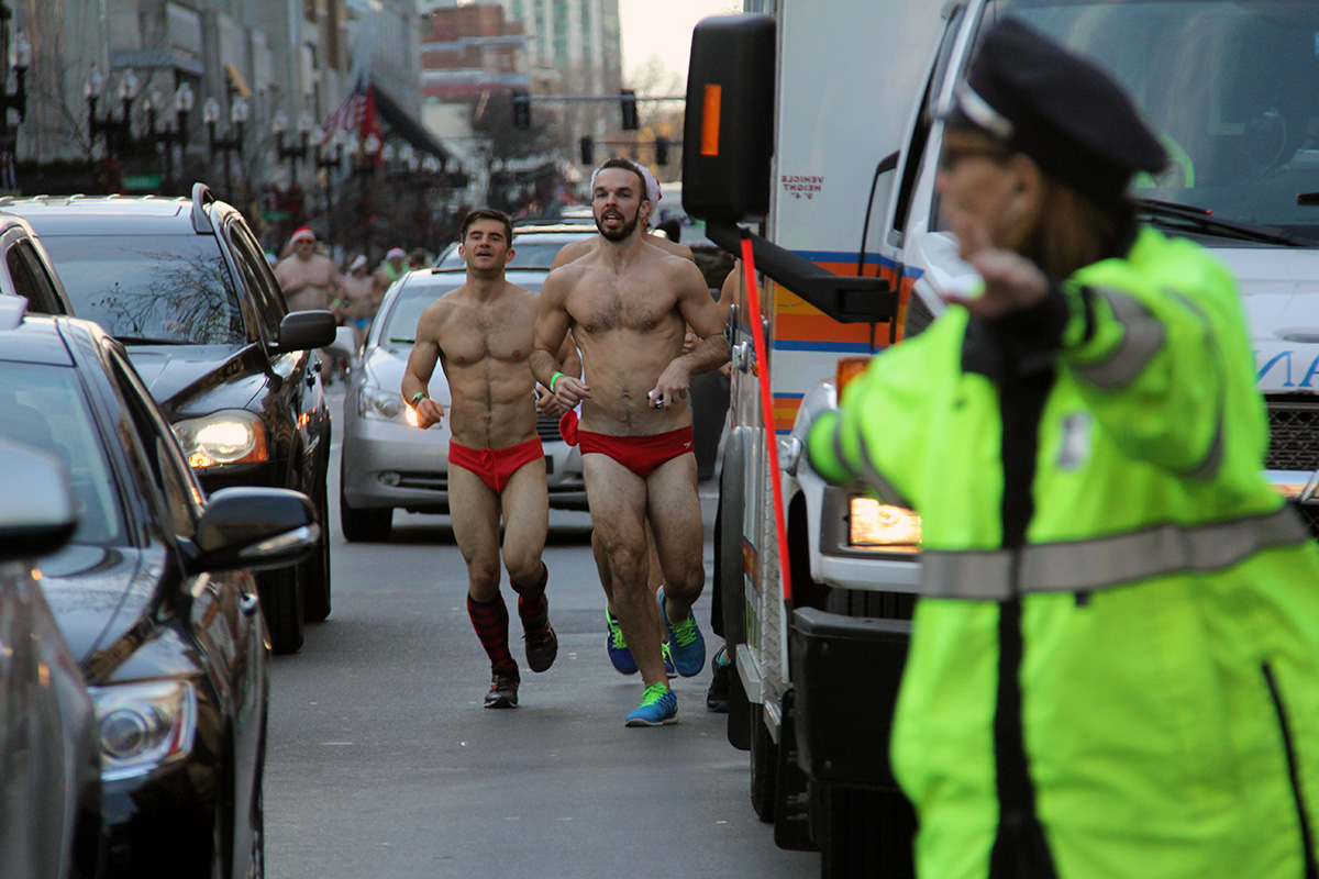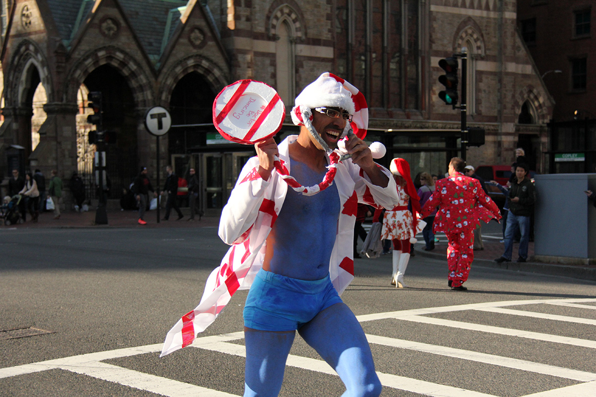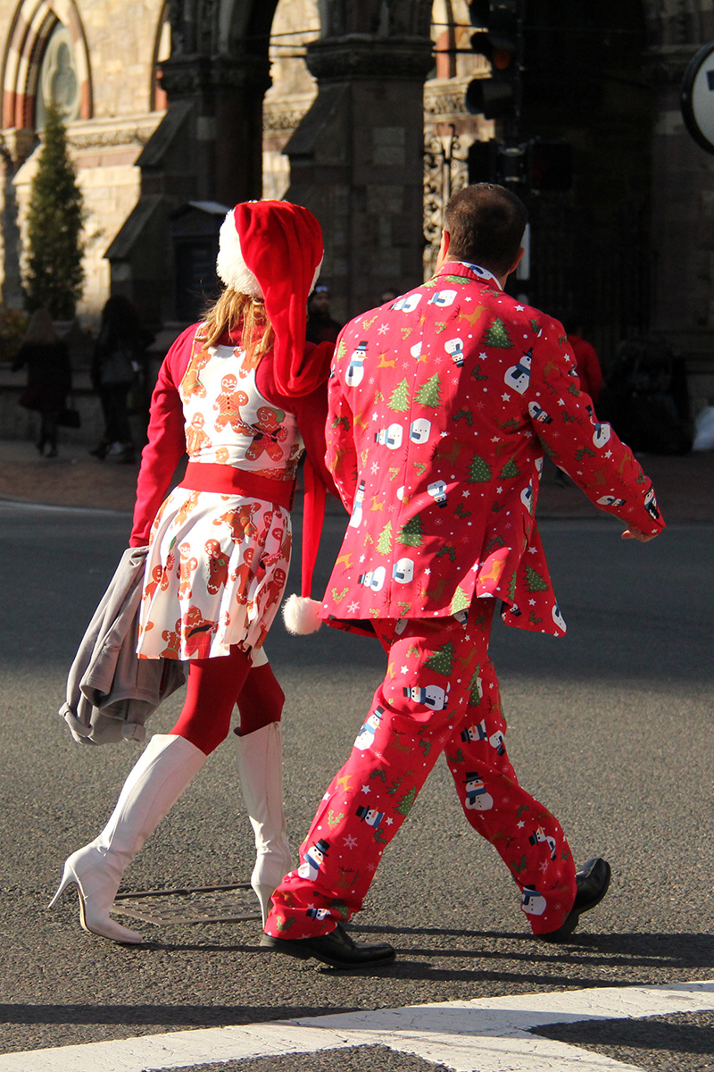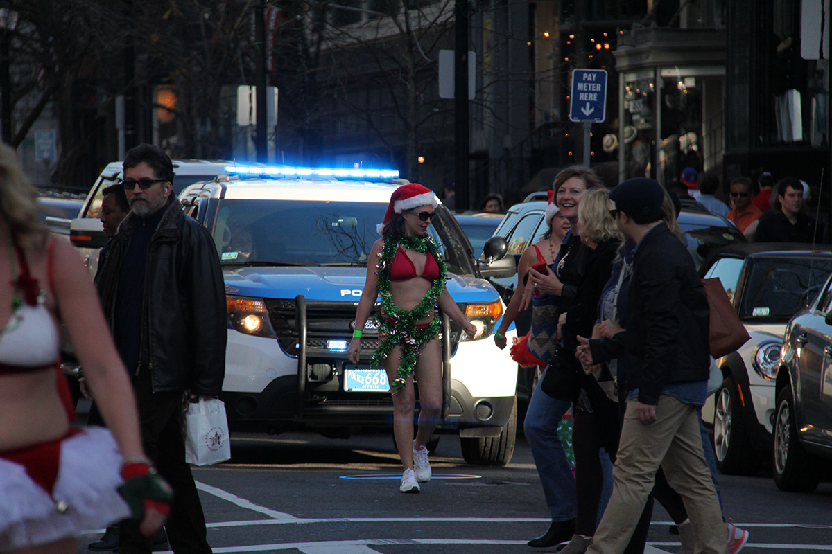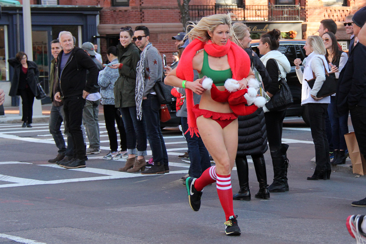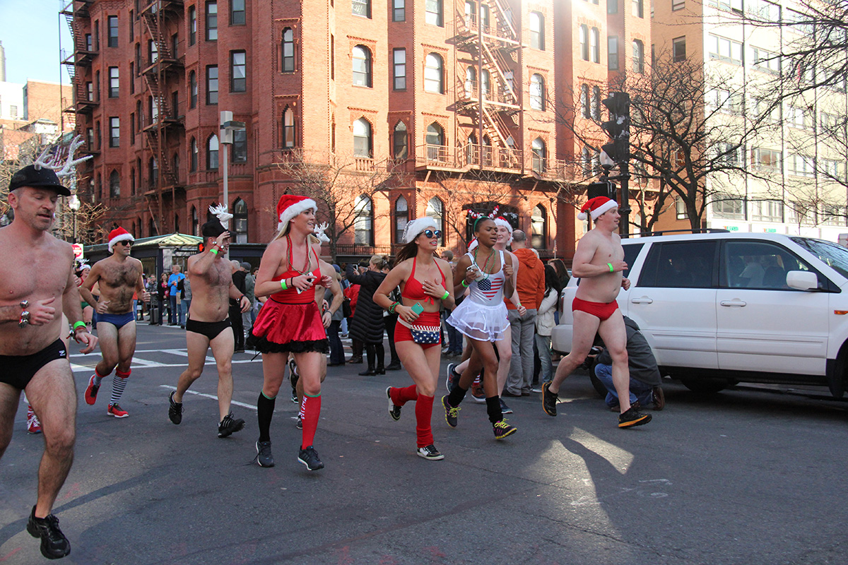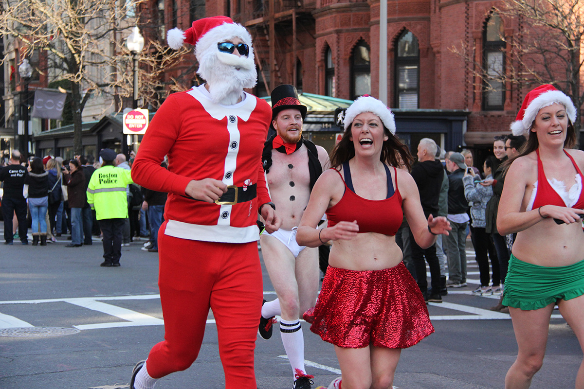 the speedo santa run wouldn't be until 1pm so i had plenty of time this morning to get ready. the only breakfast i had was a leftover portuguese tarts. i left the house a bit after noontime via bicycle. it was an unseasonably warm day with temperature close to 60 degrees. typically the weather for a speedo santa run is cold, which makes it that much crazier to see people running around in underwears and swimsuits. now with the temperature more spring than winter, what's the challenge in that? i heard because of el niño this year, it will probably be warm here in boston all the way until mid-january. maybe they should change the name of the run to "summer in winter" if this warming trend continues.