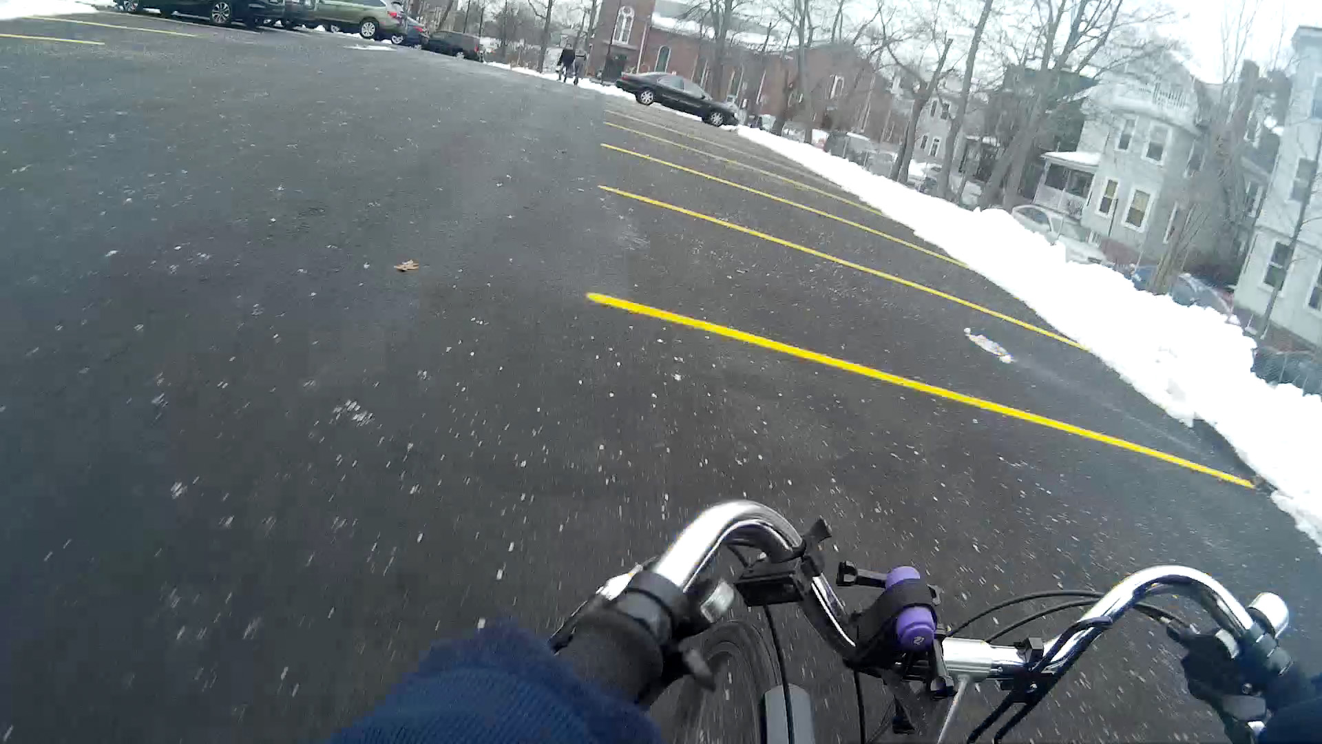 temperature today never got above 30°F which meant there would be no melting. i was hoping to move the motorcycle to belmont but the bike cover was coated in a layer of ice and there was still a lot of slippery snow clumps on the road. so instead i rode the bicycle, which in hindsight was actually more dangerous, since most bike lanes are covered in snow and ice, meaning i end up riding further out in the street. i did make the switch to my cargo bike, which has a lower center of gravity and bigger wheels.