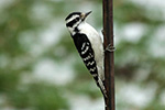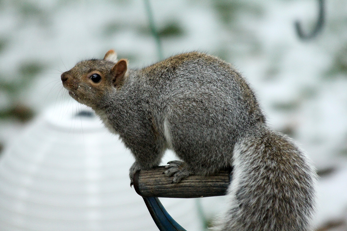 my mother was yelling by the window: "squirrels!" i ran to look and there was a grey squirrel hanging and feeding from the suet feeder. i opened the window and scared it off. but knowing squirrels, they are persistent, and a short while later it came back again. so throughout the day i kept an eye on the feeder. there were birds - mostly sparrows - but a few juncos and downies came to feed as well, just no chickadees or nuthatches. the squirrel kept coming back, and i kept scaring it away. even when i had hailey's help (she hates squirrels more than i do), chasing the squirrel out of the yard, driving it off of trees with a bamboo pole, it kept coming back. it only stopped once it got dark.