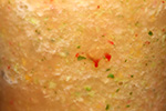 i noticed it when i went to go wash my hands, but i was bleeding from a finger. i was careful with the ninja blades, but i still managed to get sliced without knowing it, just a thin sliver but still enough to bleed. i put a bandaid on it but later used the liquid skin polish (it hurt like crazy but once dried i didn't notice it anymore).