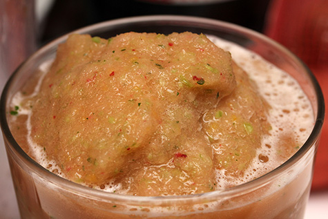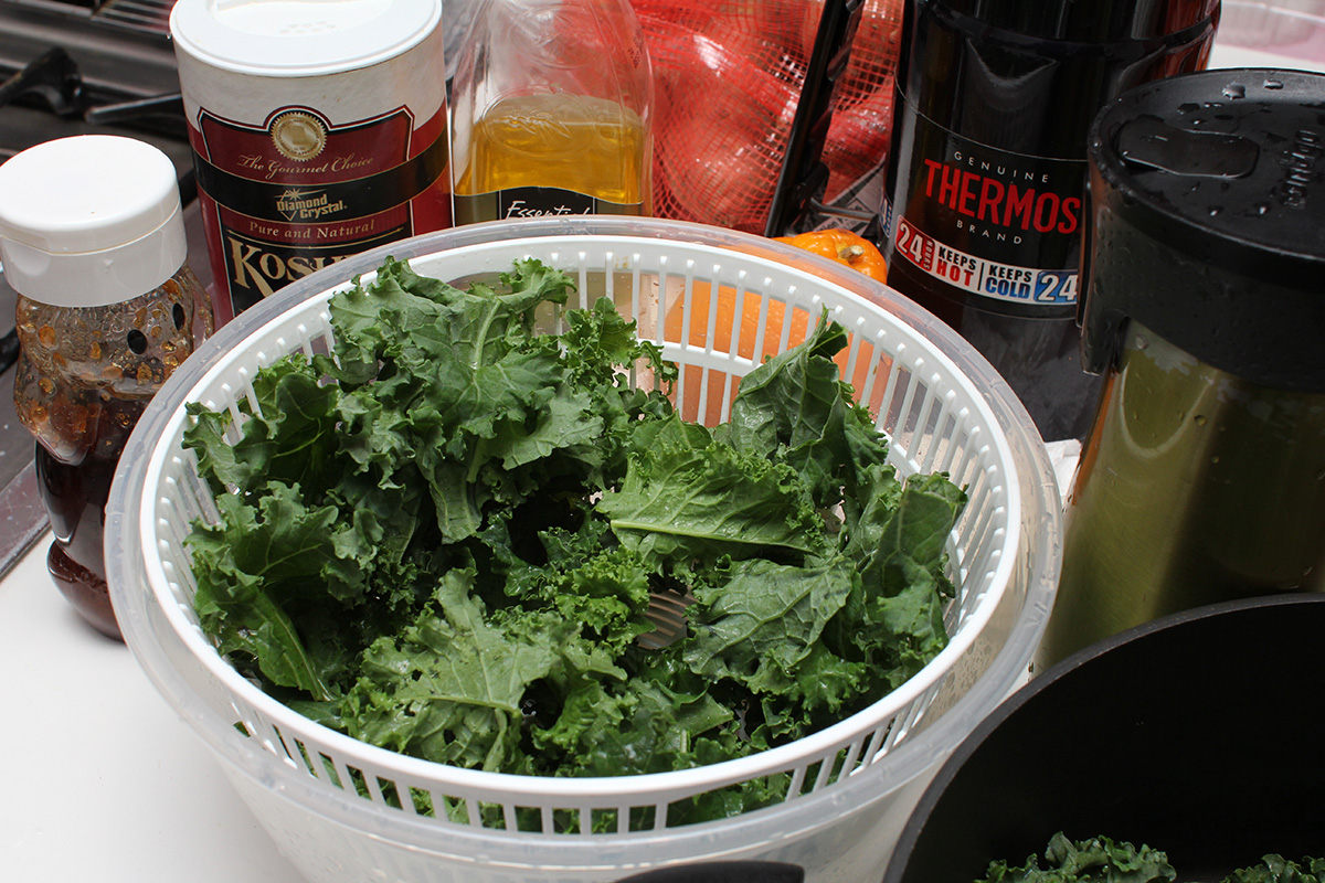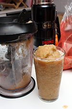 i added a cup of frozen fruit (been in my fridge since the summer), a cup of chopped kale stems, and a cup of pink grapefruit juice. normally i'd also add a banana or some yogurt, but i had neither. blending was fast and power, i pulsed it a few more times for added measure. the resulting smoothie was more of an icy slushie, which is hard to drink when the weather is so cold. it also wasn't sweet because i didn't use any sweet ingredients. the kale stems added a surprising crunch to each sip.