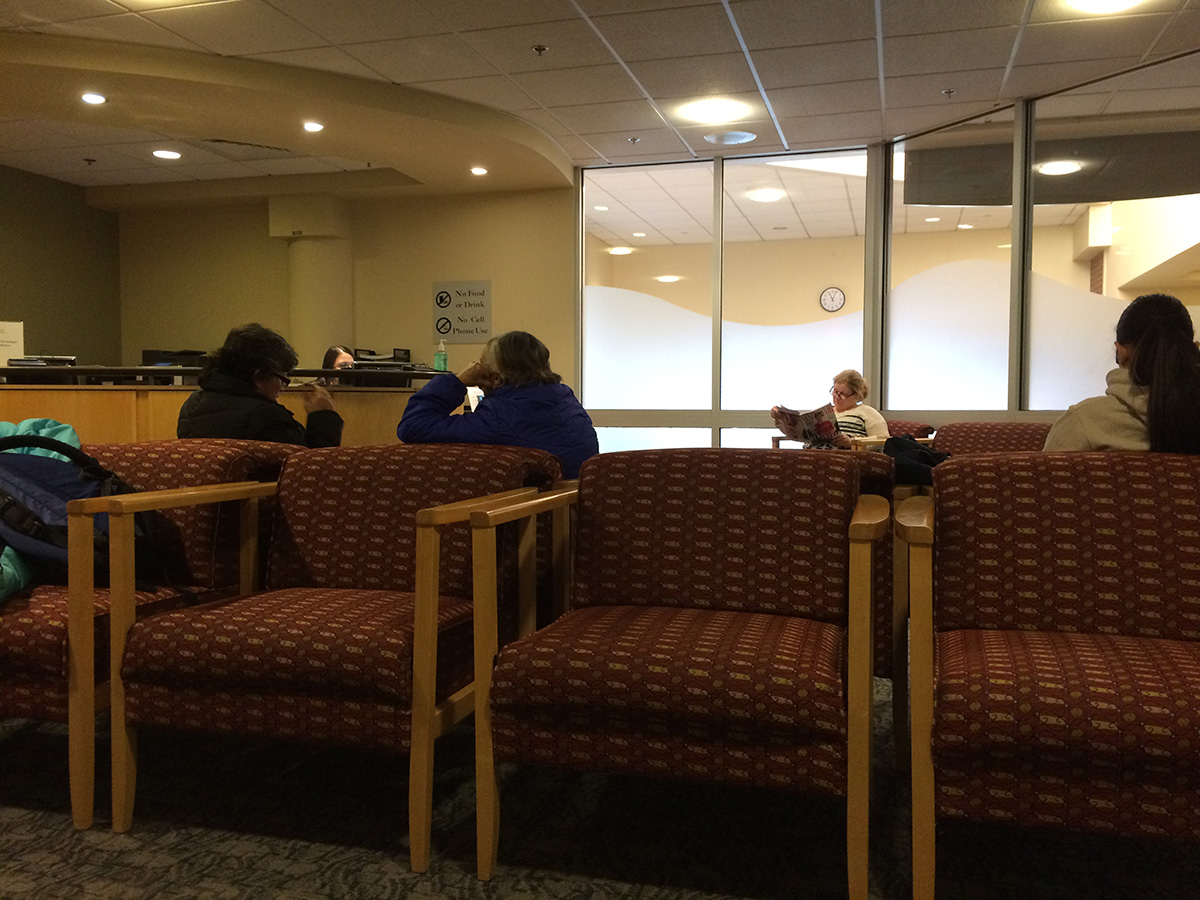 but just our luck: the receptionist read off a list of doctors who were on time, with just one doctor who was an hour behind. after we waited for nearly 40 minutes and saw that everyone who was ahead of us going inside and even some new people who came after us, i went to the receptionist and asked her if we were unlucky enough to get the late doctor. sure enough, that was us. by then we'd already waited so long that there was nothing we could do but wait. around 10:10am a nurse came out and said my father's name. while he went inside, i went across the hall to pay for the validated parking ticket, $6.