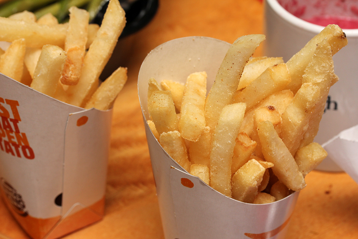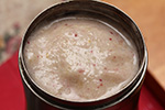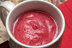 before leaving for belmont, i made two batches of smoothies. one was a beet + frozen fruit + ruby red grapefruit juice + banana + ginger; the other was a almond milk + frozen fruit + banana + ginger. the one with the almond milk was sweeter and creamier, the one with the beet had a nice deep pink color with a touch of sourness from the grapefruit juice. i poured them into insulated thermos for transport.