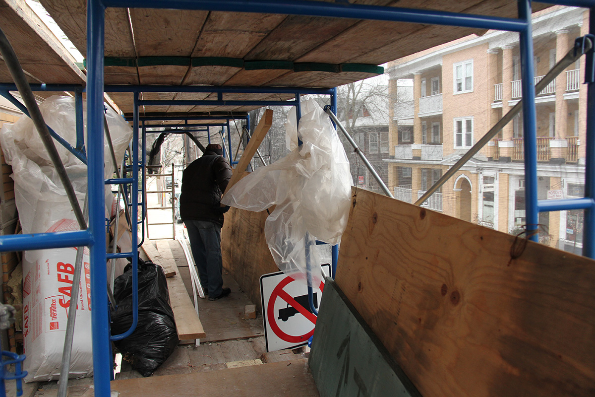 have you ever been up in a construction scaffolding? feels like an adult version of an awesome fort. i helped my father gather up some unwanted construction material (mostly wooden planks) that would otherwise be going into a dumpster come next week.