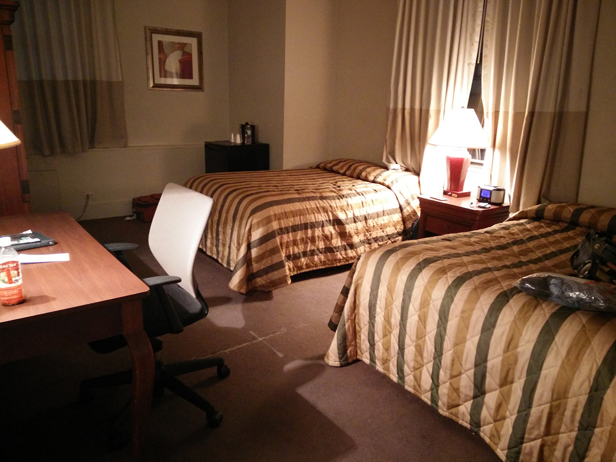 which is readily evident since the place reeks of stale cigarette smoke. 1199 is a corner room, with two windows: one facing the empire state building, the other towards 7th and 33rd street. there were scuff marks on the white walls, a painting was missing, the wall to wall carpet had tears in it, but otherwise the room was pretty clean given the slum-like conditions coming in.