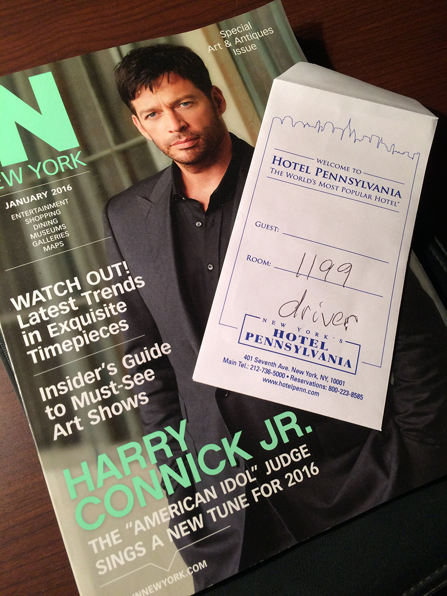 i waited in the lobby of hotel pennsylvania. nothing special, sort of utilitarian in its overall drabness. although you really can't complain when it's only $80/night and right across the street from penn station (later i learned that it's only this cheap due to the fact that winter is a low season; all other times it's definitely more expensive). there was wifi but i didn't have the password. i texted my uncle to let him know i was already waiting. the hotel seem to be doing a brisk business, a lot of europeans it seems, not so much asians. patrons would return with armful of bags from a busy day of shopping. a korean girl with a suitcase was eyeballing me. my uncle finally showed up by around 10:20pm. after he checked-in, we went upstairs to see our room, 1199.