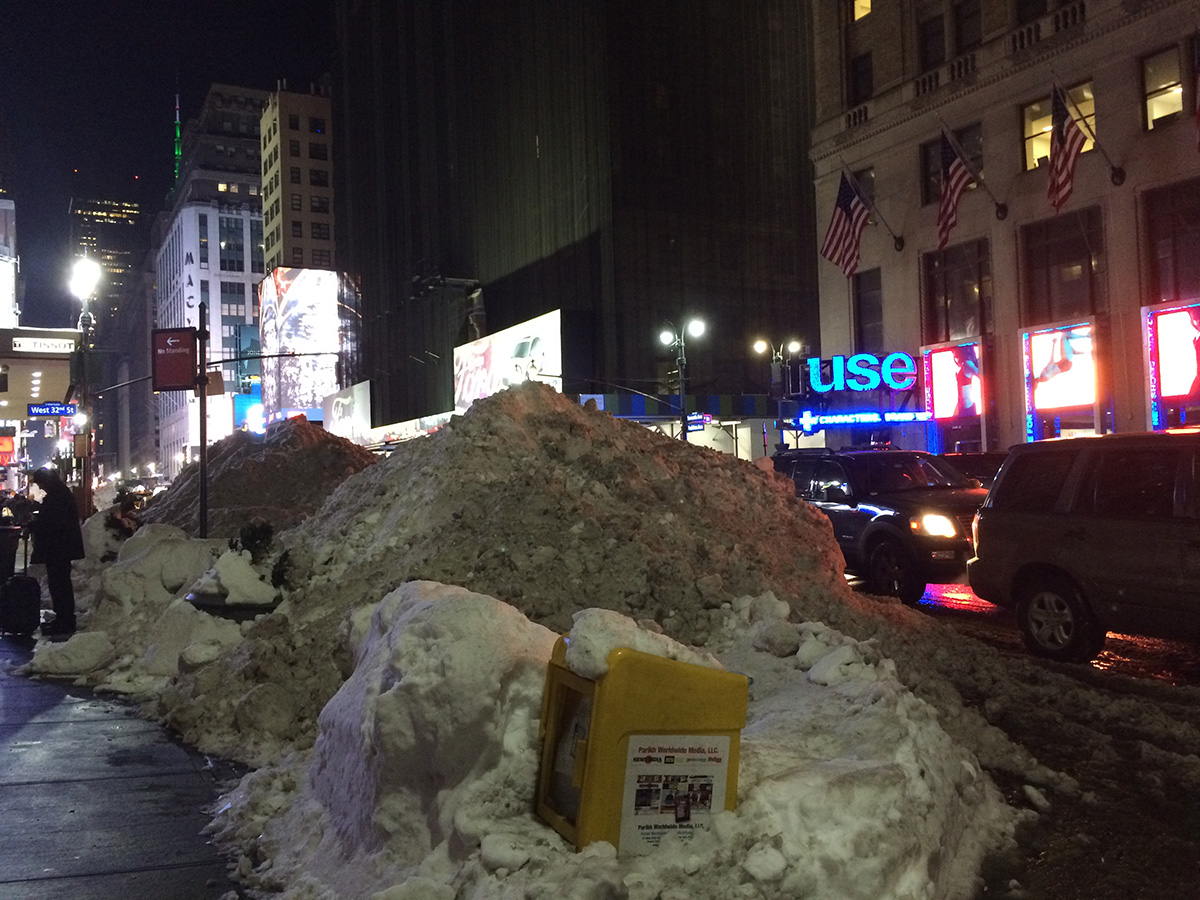 which would take another half hour given the usual traffic. i knew NYC got more snow than boston, but seeing it for myself i realized what a mess the snow made of everything (i believe they got 24+"). the windows were tinted which made everything outside seem even darker. i gasped as i watched cyclists (mostly delivery guys) biking without any lights (i'm sure it wasn't that dark). when we finally arrived on 7th and 28th, the driver just dropped off us along the slushy curb. there was a wall of snow so we had to run the slush gauntlet before finding an opening onto the sidewalk. welcome to new york! it was 8:40pm. i called my mother to let her know i'd arrived and then made my way to koreatown for dinner.