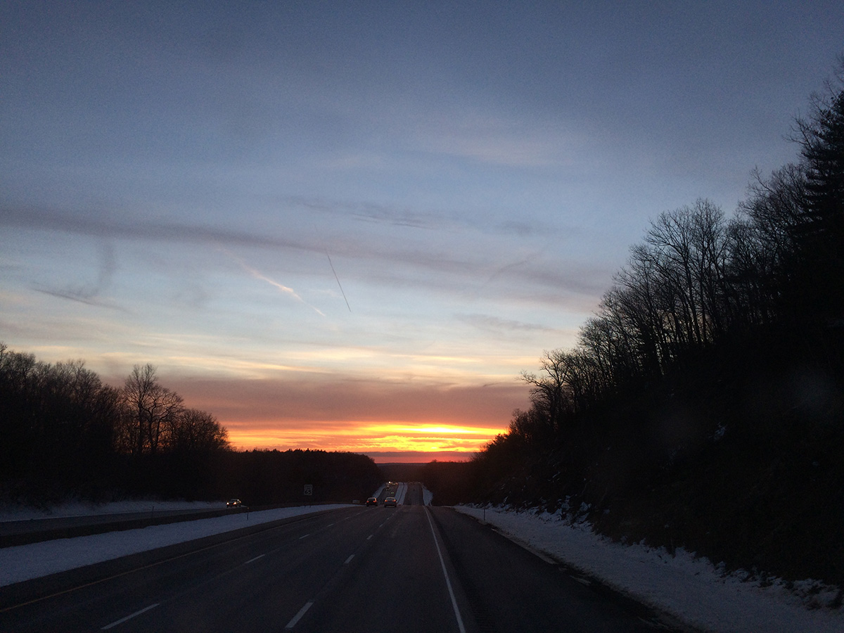 given the direction that we were driving (west then south) and the angle of the late afternoon winter sun, i was in the glare for much of the first hour of the trip. the sun also made me warm and i quickly took off my jackets because i was overheating.