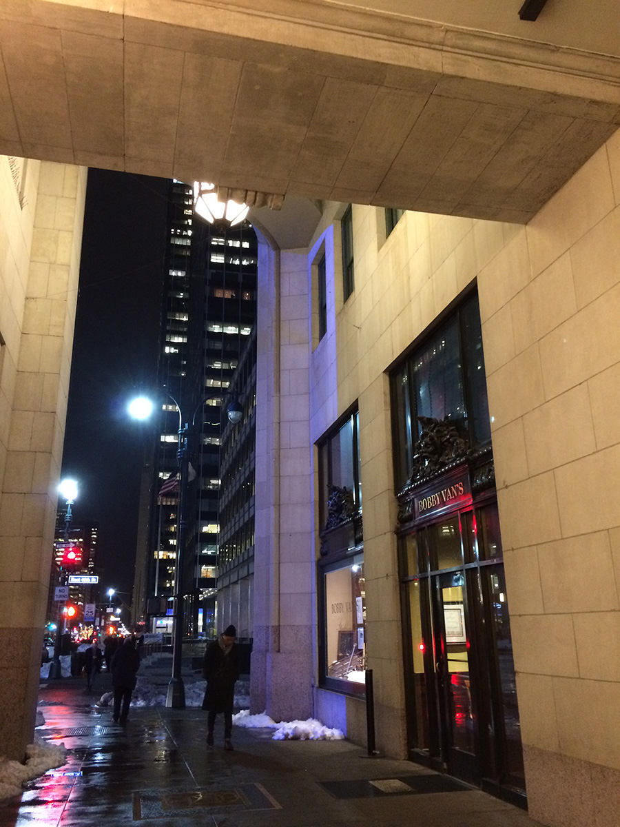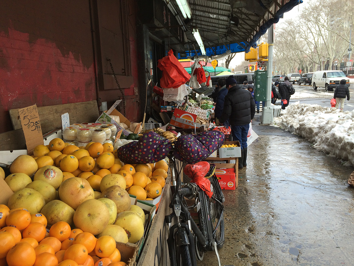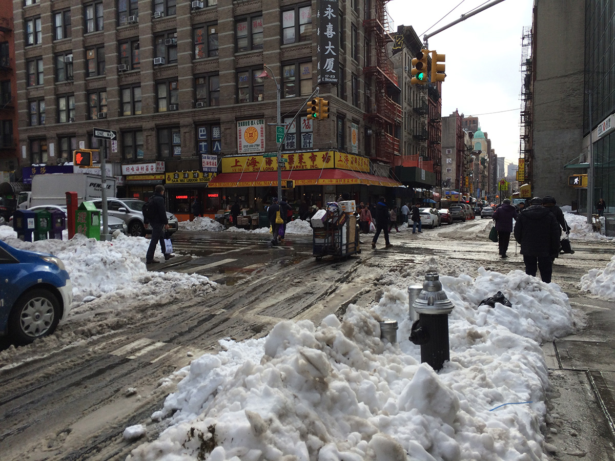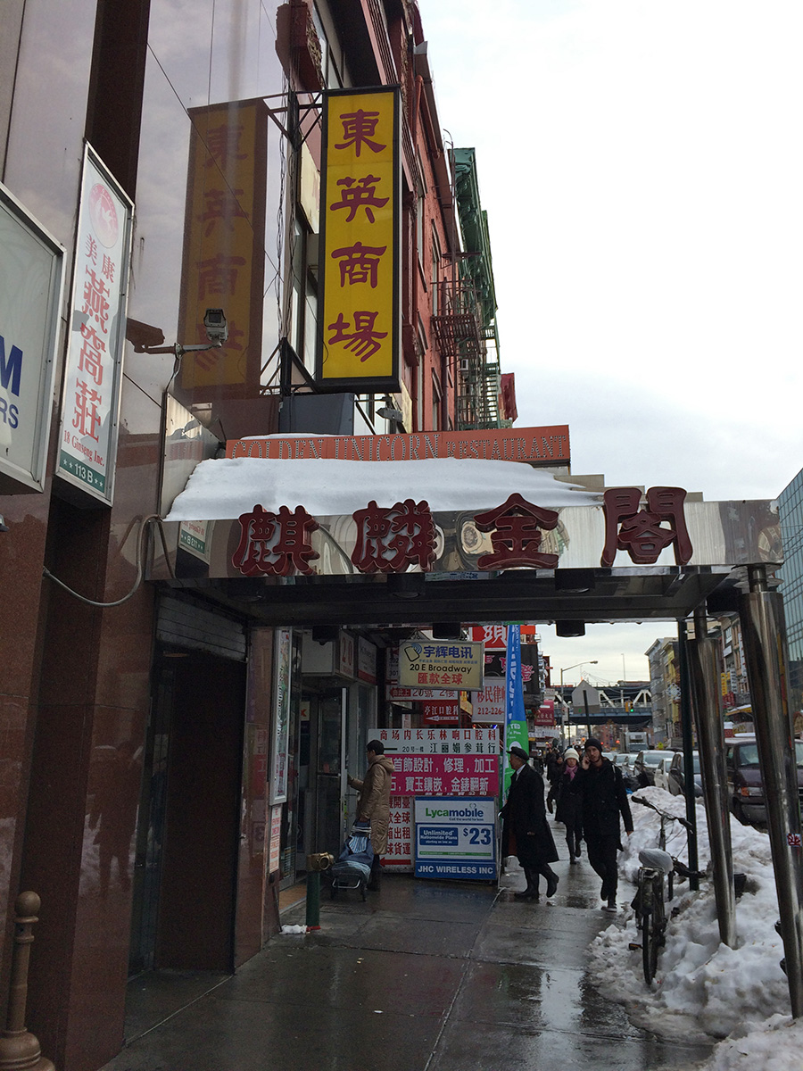 we grabbed a D train from herald square to grand street. from grand street it was a 14 minute walk to the golden unicorn. i couldn't quite get my bearing, especially having to navigate through the snow piles and the slush puddles,